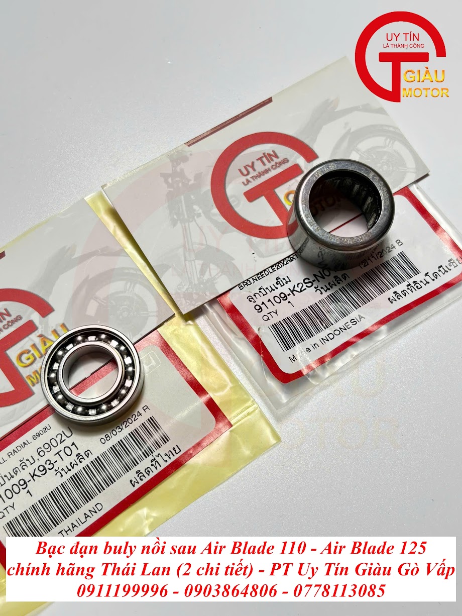Đừng để chiếc Air Blade của bạn bị ì máy, gào hú hay hao xăng vì bạc đạn nồi sau xuống cấp. Hãy đến ngay Giàu Gò Vấp để trang bị Bạc Đạn Buly Nồi Sau Air Blade 110 - Air Blade 125 Chính Hãng Thái Lan và tận hưởng cảm giác lái xe êm ái, mạnh mẽ và bền bỉ như mới!