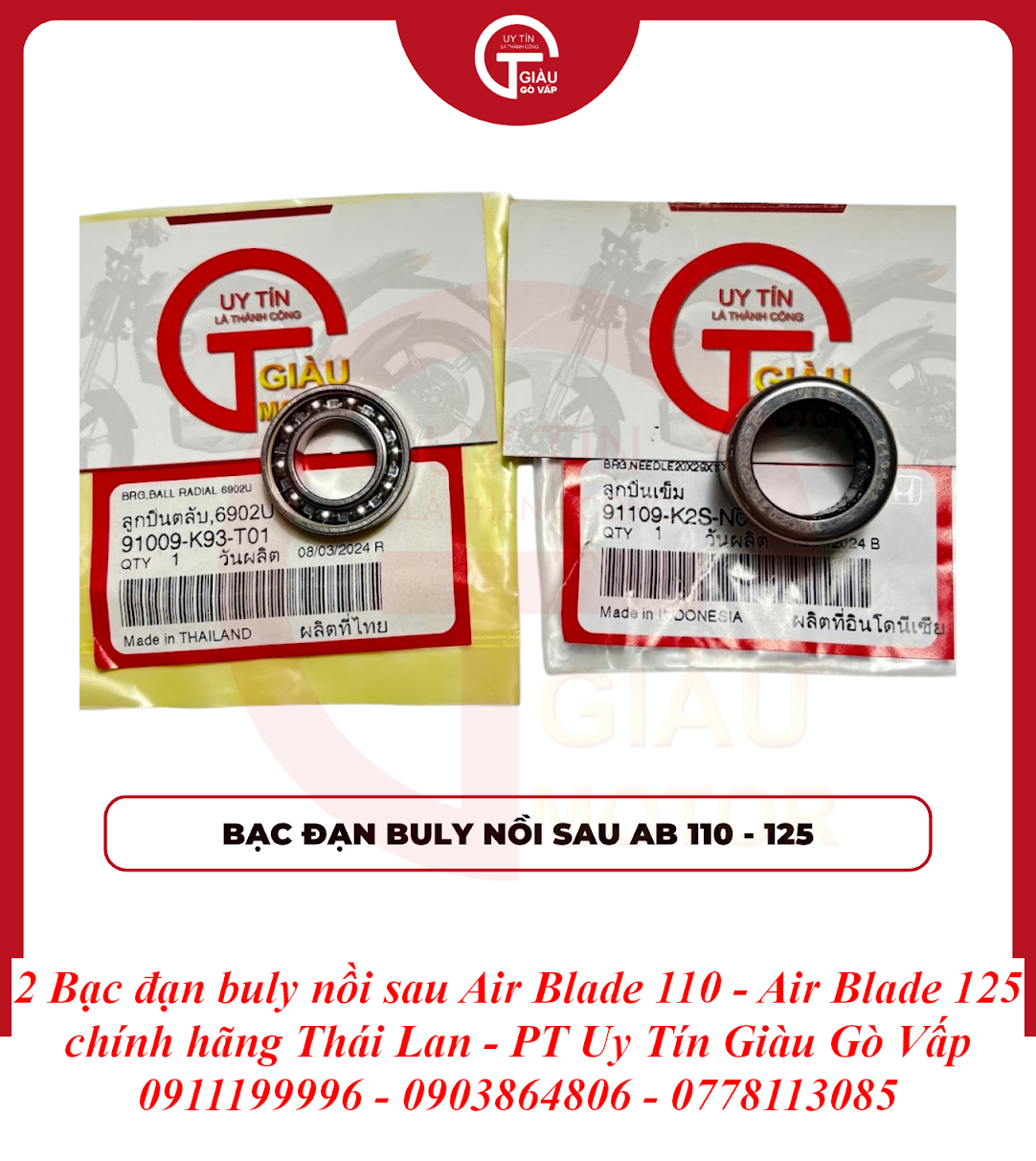 Đừng để những rắc rối này làm giảm đi trải nghiệm lái xe và giá trị của chiếc Air Blade của bạn! Hãy đến ngay Giàu Gò Vấp – cửa hàng phụ tùng xe máy uy tín hàng đầu tại TP. Hồ Chí Minh, chuyên cung cấp Bạc Đạn Buly Nồi Sau Air Blade 110 - Air Blade 125 Chính Hãng Thái Lan. Chúng tôi cam kết mang lại sự êm ái, mạnh mẽ và bền bỉ chuẩn "zin" Thái Lan cho "xế cưng" của bạn!