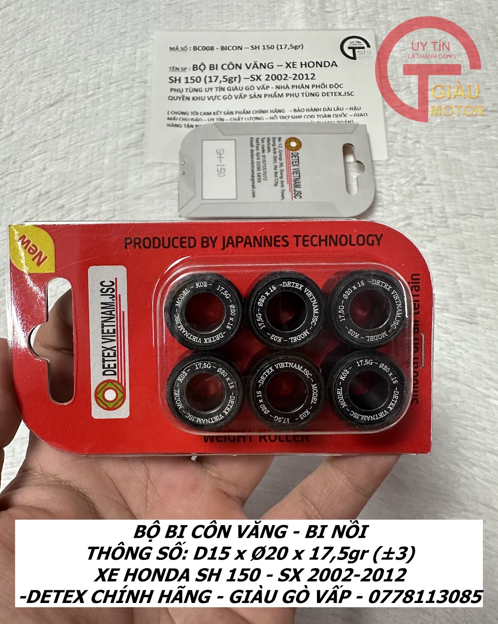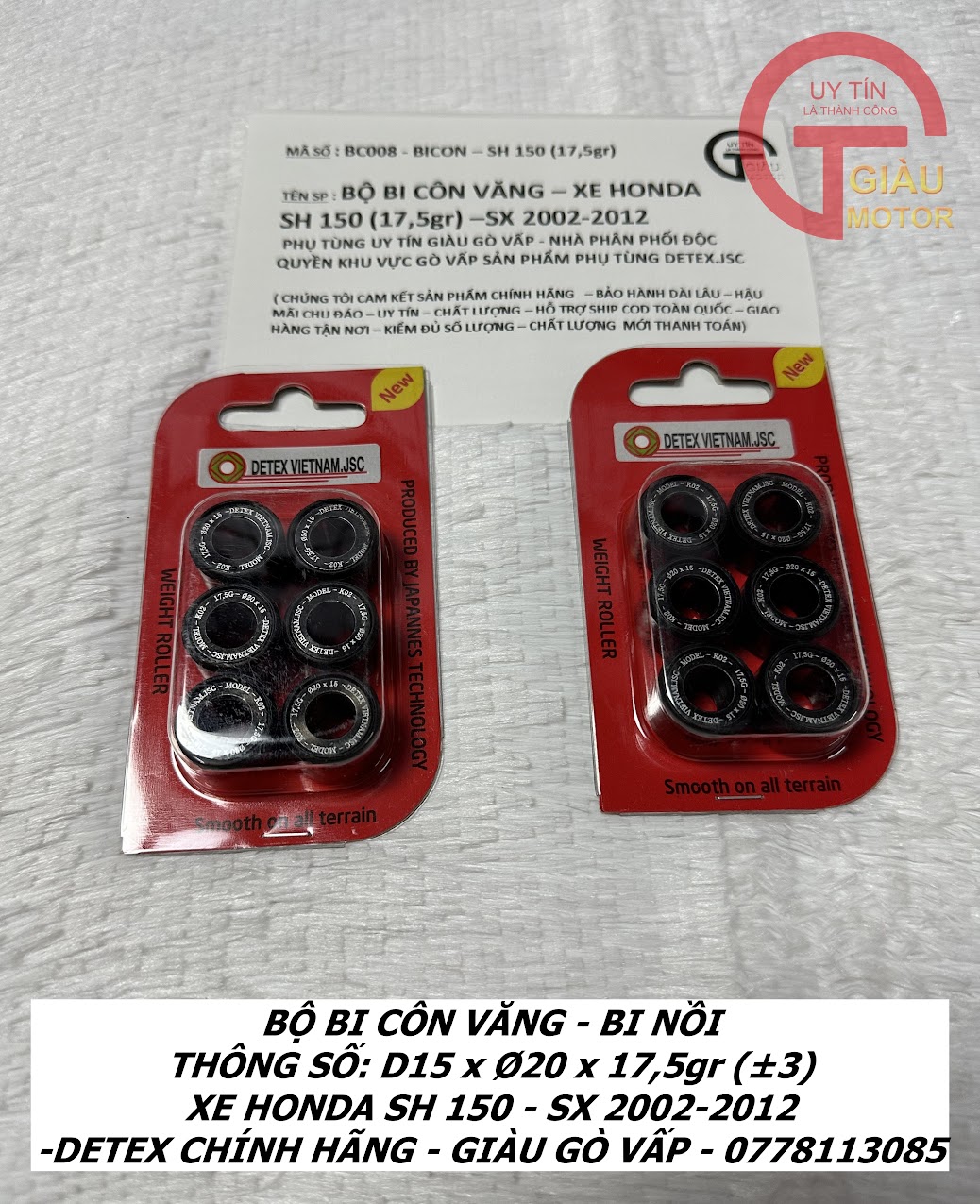 - Tại cửa hàng phụ tùng Giàu Gò Vấp, chúng tôi cung cấp bi côn văng xe Honda SH 150 hàng Detex.JSC chính hãng, giá rẻ.