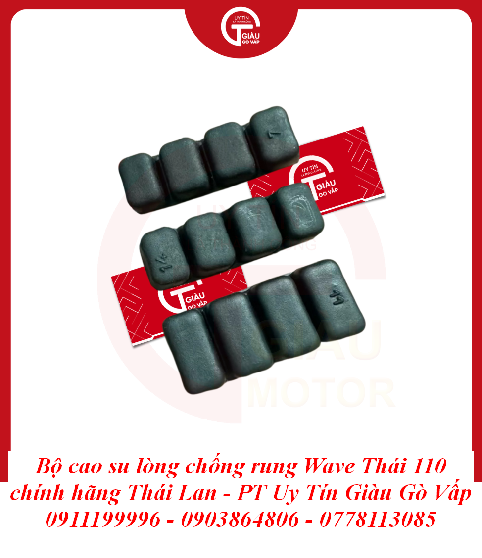 Giàu Gò Vấp là địa chỉ uy tín được cộng đồng người chơi xe Wave Thái 110 và người dùng xe máy lâu năm tại TP. Hồ Chí Minh tin tưởng. Chúng tôi cam kết mang đến cho bạn sản phẩm Bộ 3 Cao Su Lòng Chống Rung Wave Thái 110 Chất Lượng Cao Thái Lan với: