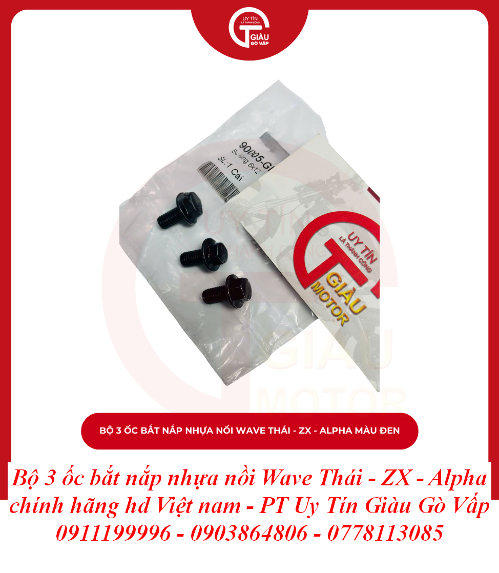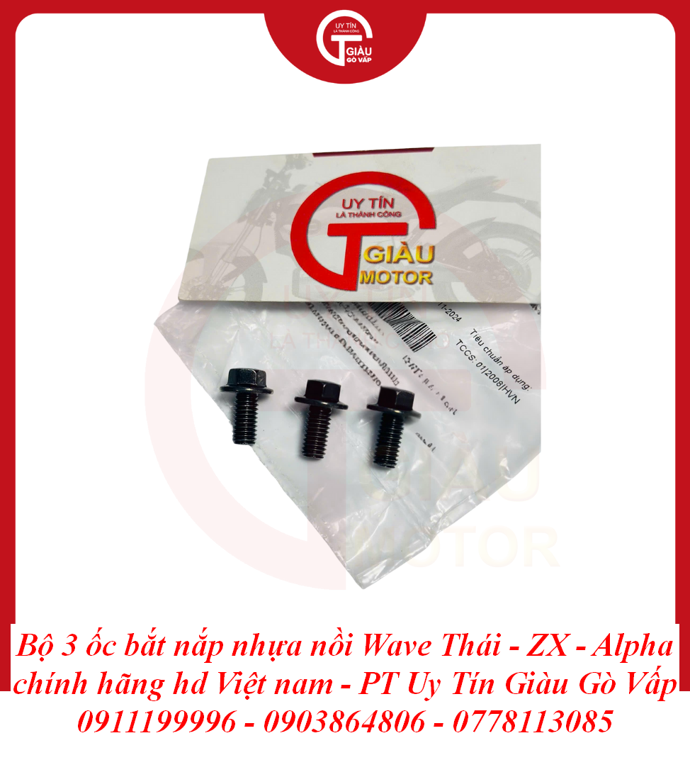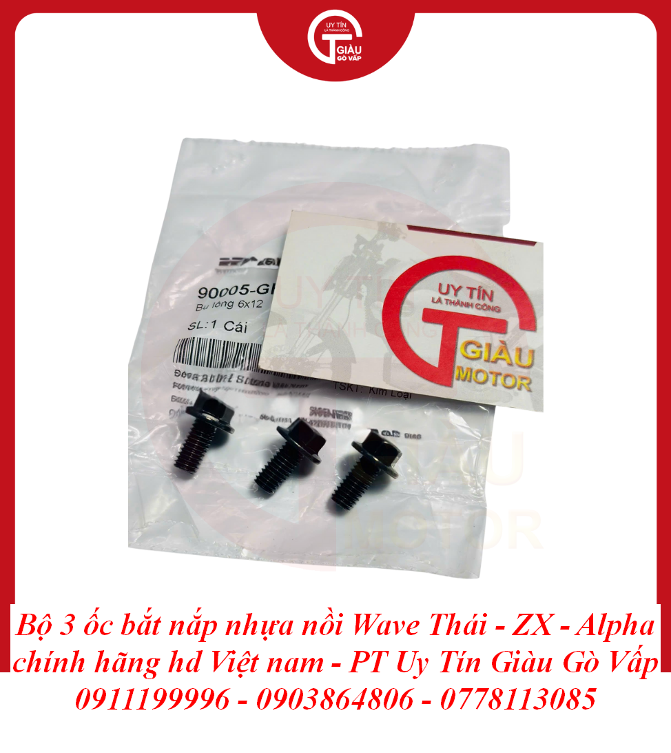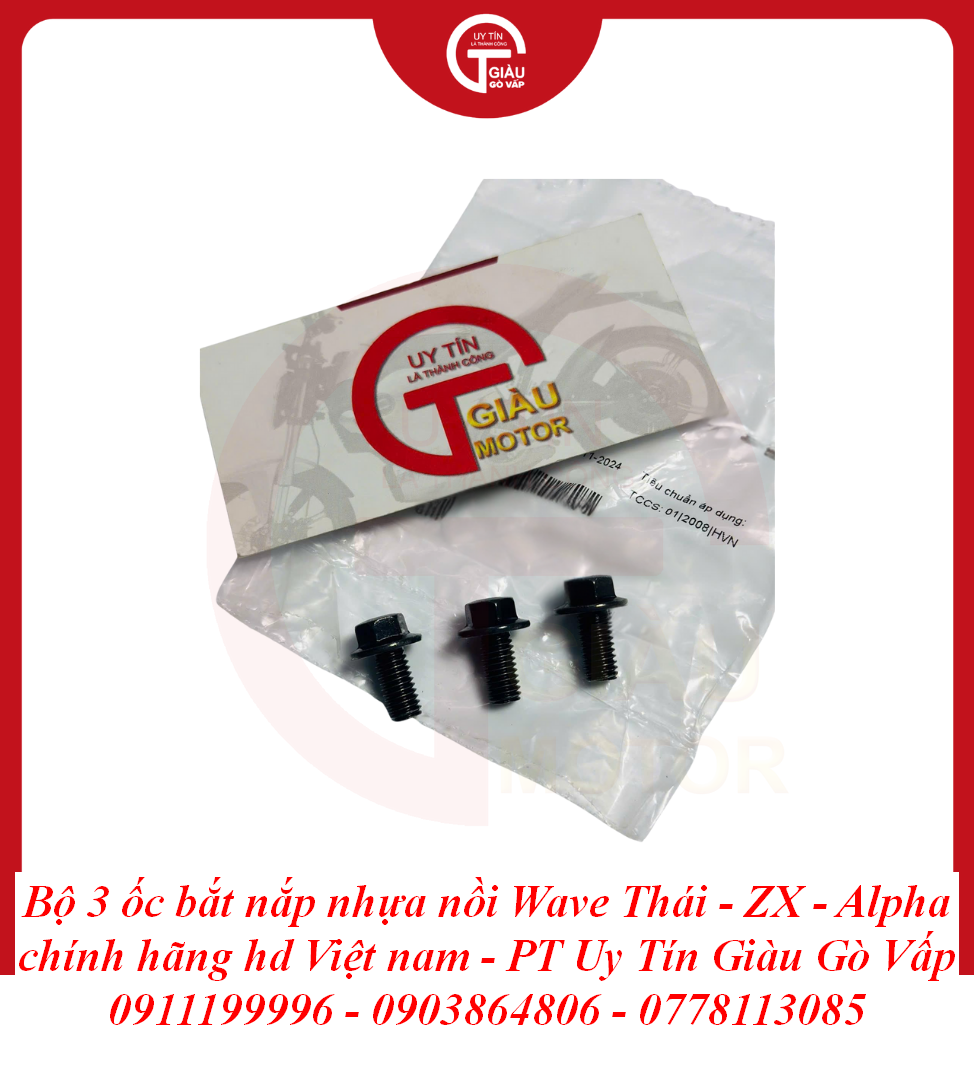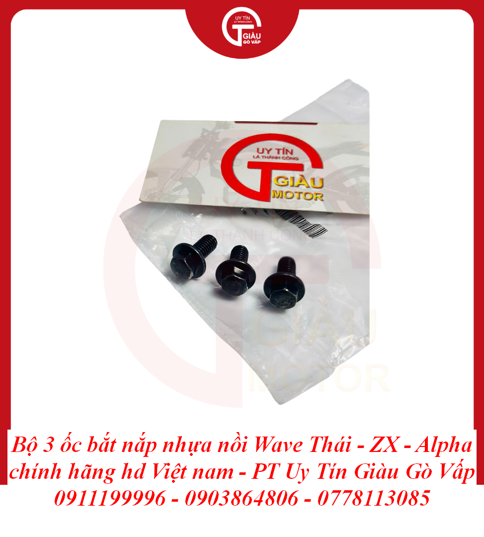 Giàu Gò Vấp là địa chỉ uy tín được cộng đồng người chơi xe Wave và người dùng xe máy lâu năm tại TP. Hồ Chí Minh tin tưởng. Chúng tôi cam kết mang đến cho bạn sản phẩm Bộ 3 Ốc Bắt Nắp Nhựa Nồi Wave Thái - Wave ZX - Wave Alpha Chất Lượng Cao với: