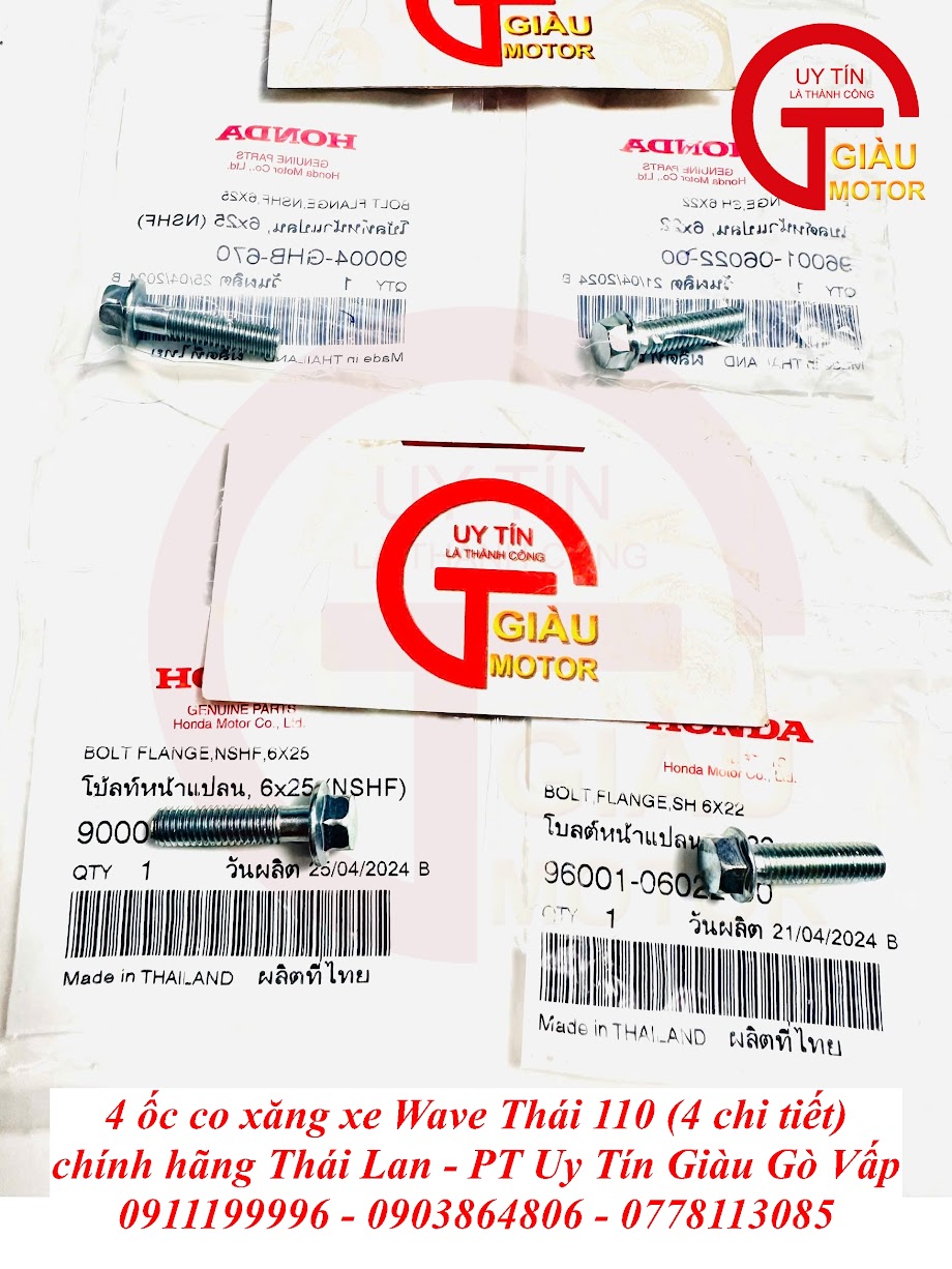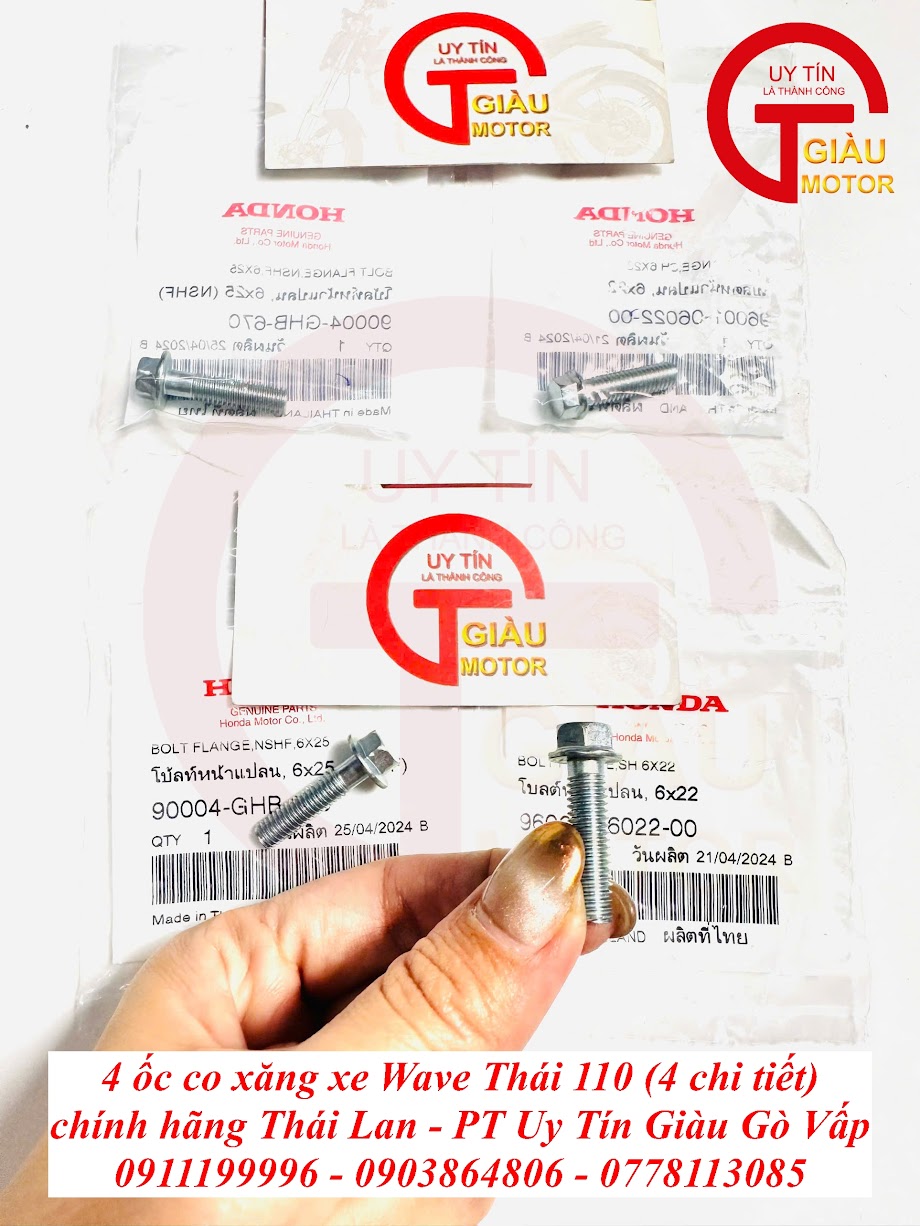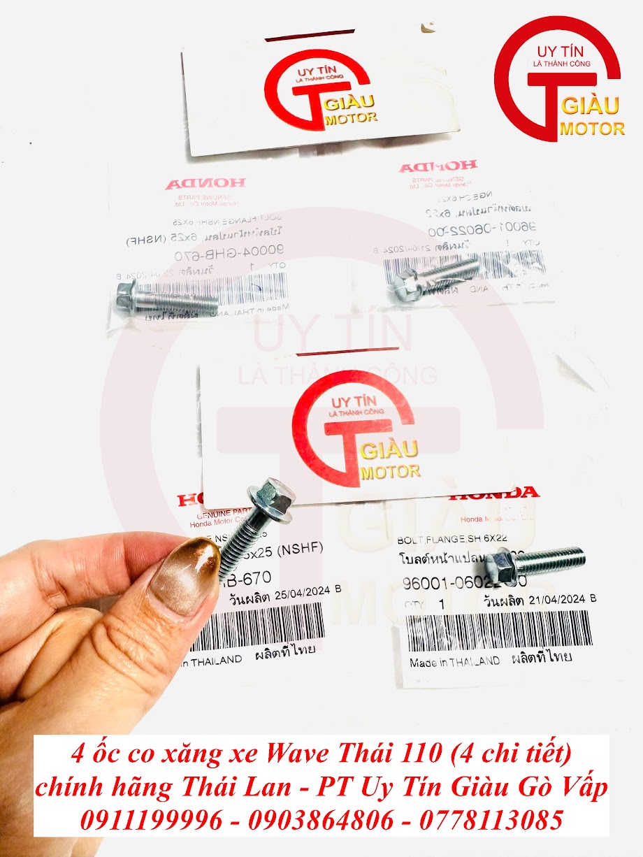 Đừng để tình trạng hao xăng hay khó nổ làm ảnh hưởng đến trải nghiệm lái xe và túi tiền của bạn. Hãy đến ngay Giàu Gò Vấp để trang bị Bộ 4 Ốc Co Xăng Wave Thái 110 Chính Hãng Thái Lan và khôi phục hiệu suất tối ưu cho "xế cưng" của bạn!