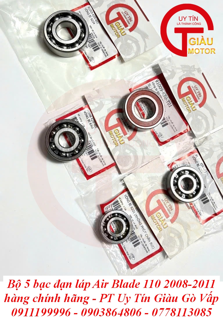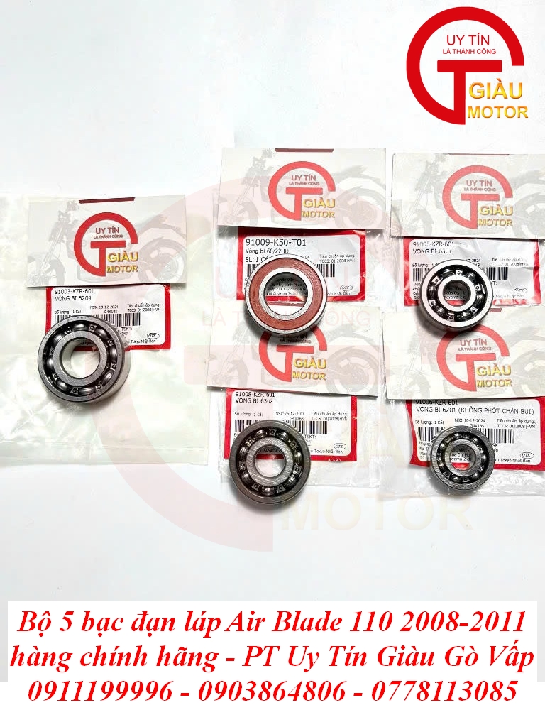 Đừng để tiếng hú láp làm bạn khó chịu và ảnh hưởng đến tuổi thọ xe! Hãy thay thế ngay bằng Bộ 5 Bạc Đạn Láp Air Blade 110 (2008-2011) Chính Hãng tại Giàu Gò Vấp để chiếc xe của bạn luôn vận hành êm ái, bền bỉ và an toàn trên mọi nẻo đường!