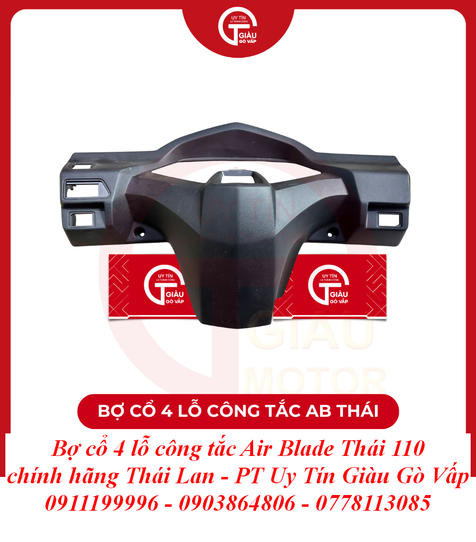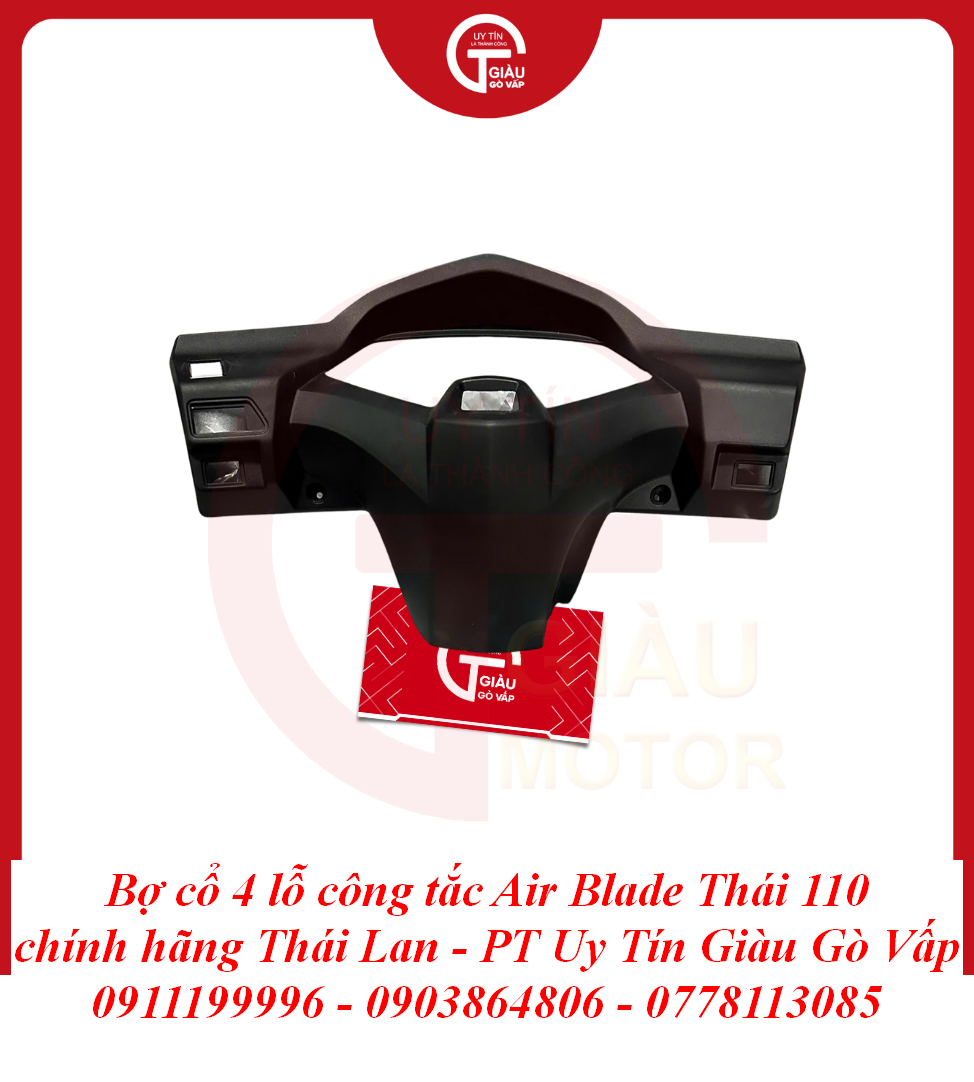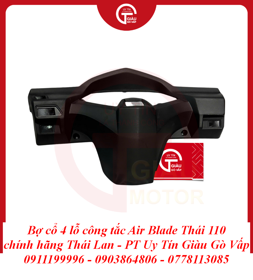 Tại Giàu Gò Vấp, chúng tôi tự hào mang đến sản phẩm Bợ Cổ 4 Lỗ Công Tắc Air Blade Thái 110 Chính Hãng Thái Lan với những cam kết vàng, giúp bạn hoàn toàn yên tâm về chất lượng và thẩm mỹ: