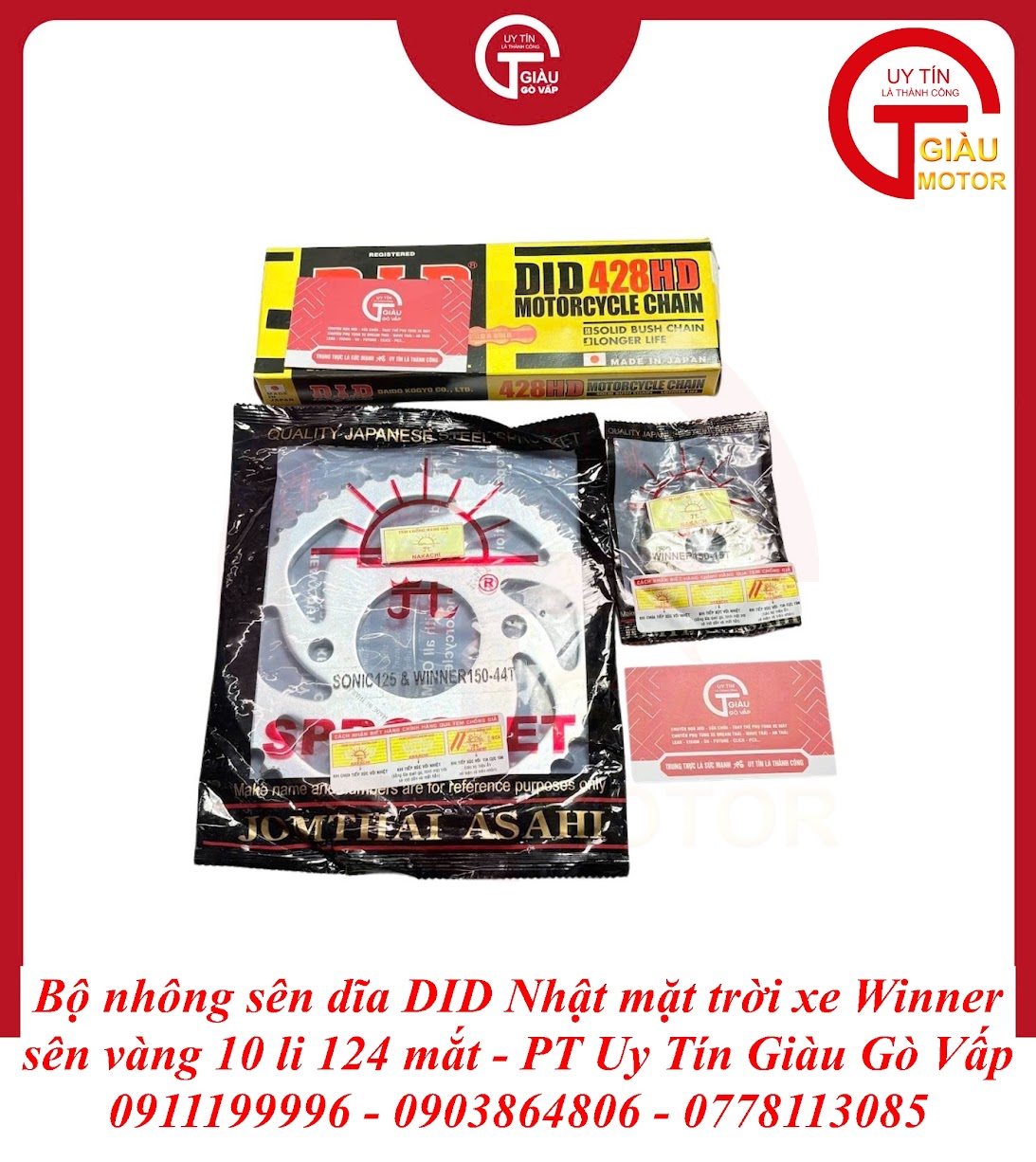 Đừng để những vấn đề này làm giảm đi sự an toàn và trải nghiệm lái xe của bạn! Hãy đến ngay Giàu Gò Vấp – cửa hàng phụ tùng xe máy uy tín hàng đầu tại TP. Hồ Chí Minh, chuyên cung cấp Bộ Nhông Sên Dĩa DID Nhật Chính Hãng dành riêng cho xe Winner. Chúng tôi cam kết mang lại khả năng tăng tốc mượt mà, độ bền tuyệt đối và giá tốt nhất!