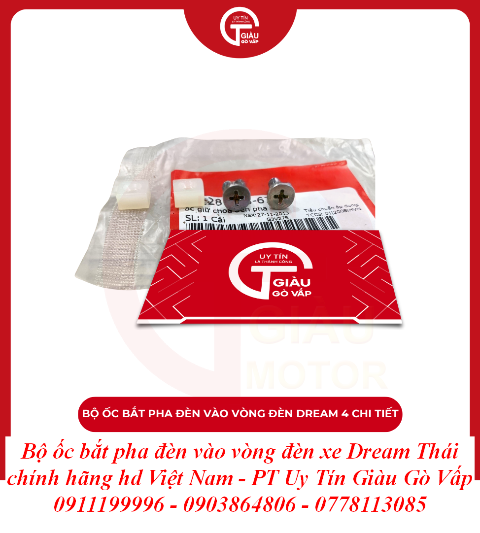 Trong quá trình phục dựng và chăm sóc chiếc xe huyền thoại Dream Thái, hệ thống chiếu sáng không chỉ cần độ sáng mà còn cần sự chắc chắn tuyệt đối. Bộ Ốc Bắt Pha Đèn Vào Vòng Đèn là chi tiết kỹ thuật nhỏ nhưng cực kỳ quan trọng, có nhiệm vụ liên kết chặt chẽ phần choá đèn (pha đèn) với vòng inox (vòng đèn). Một bộ ốc chuẩn chính hãng sẽ giúp cụm đèn trước luôn im ru, không rung rè và giữ cho "đôi mắt" của xế yêu luôn tinh anh, sang trọng.