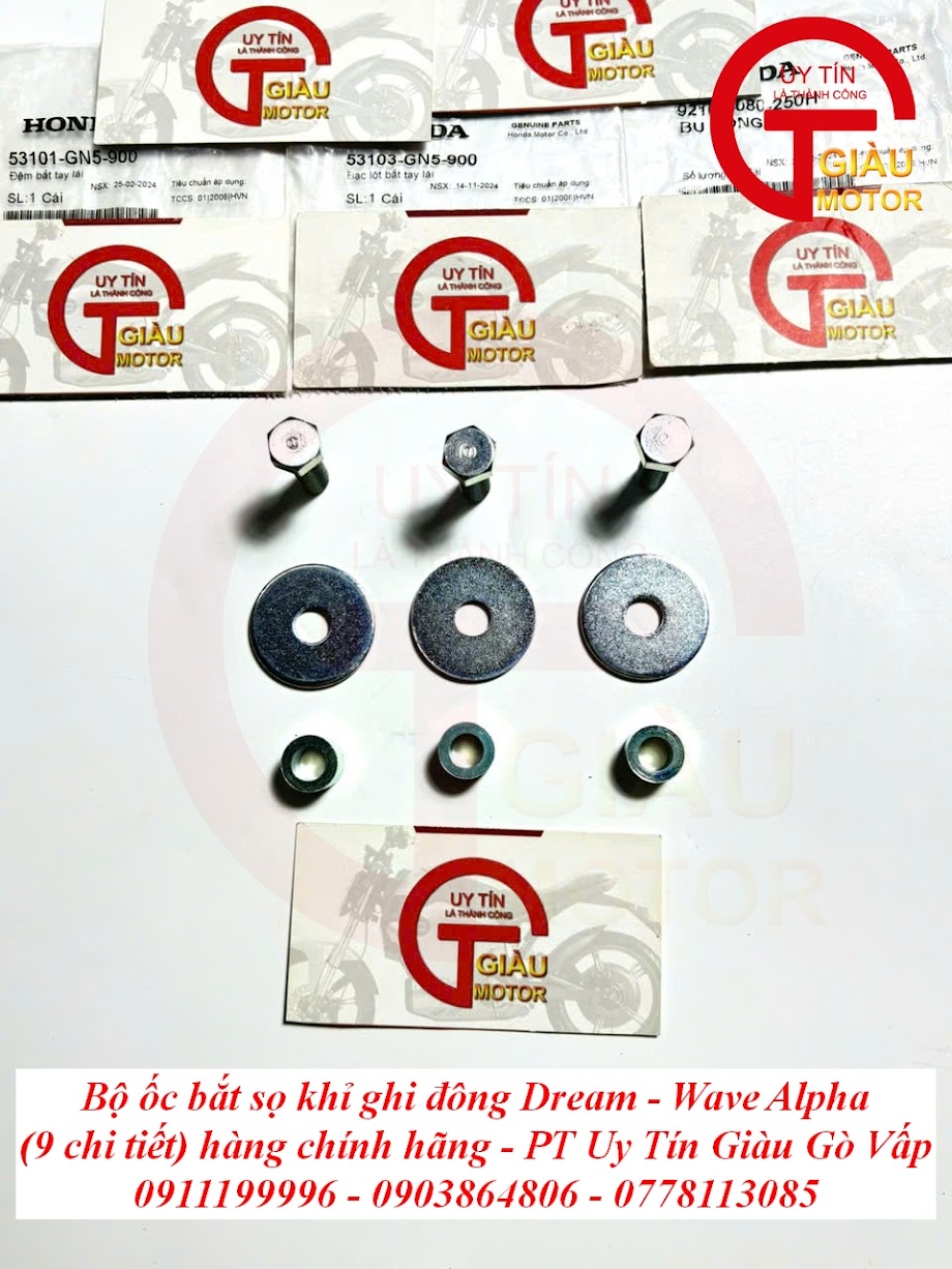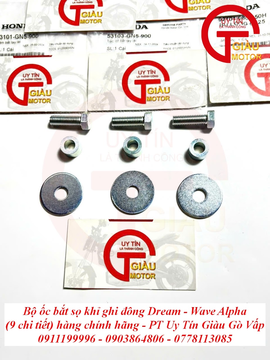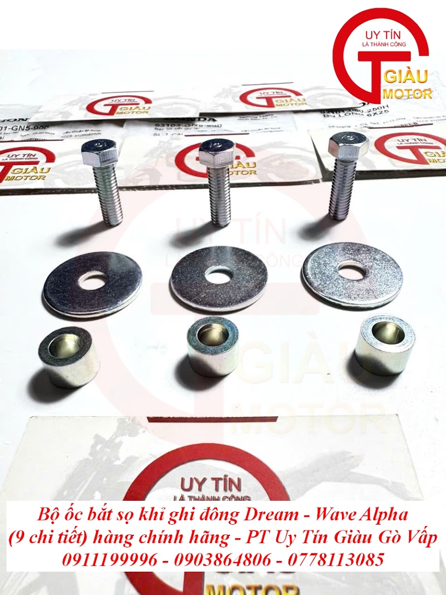 GIẢI PHÁP HOÀN HẢO – BỘ ỐC BẮT SỌ KHỈ GHI ĐÔNG XE DREAM - WAVE ALPHA (9 CHI TIẾT) CHÍNH HÃNG!
