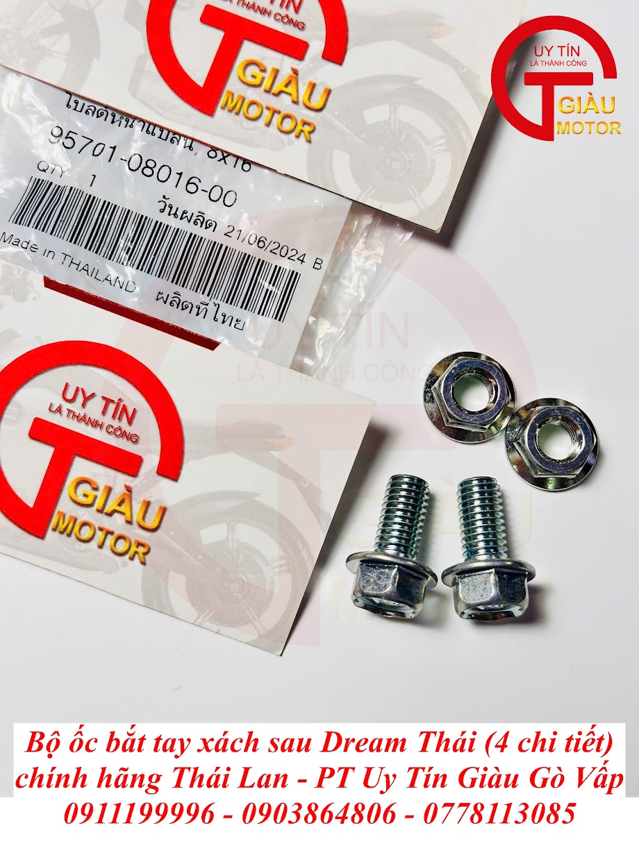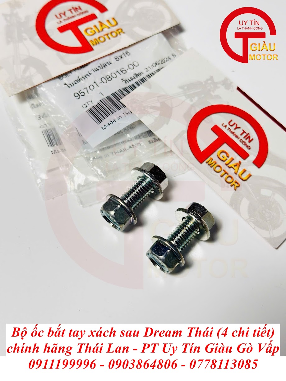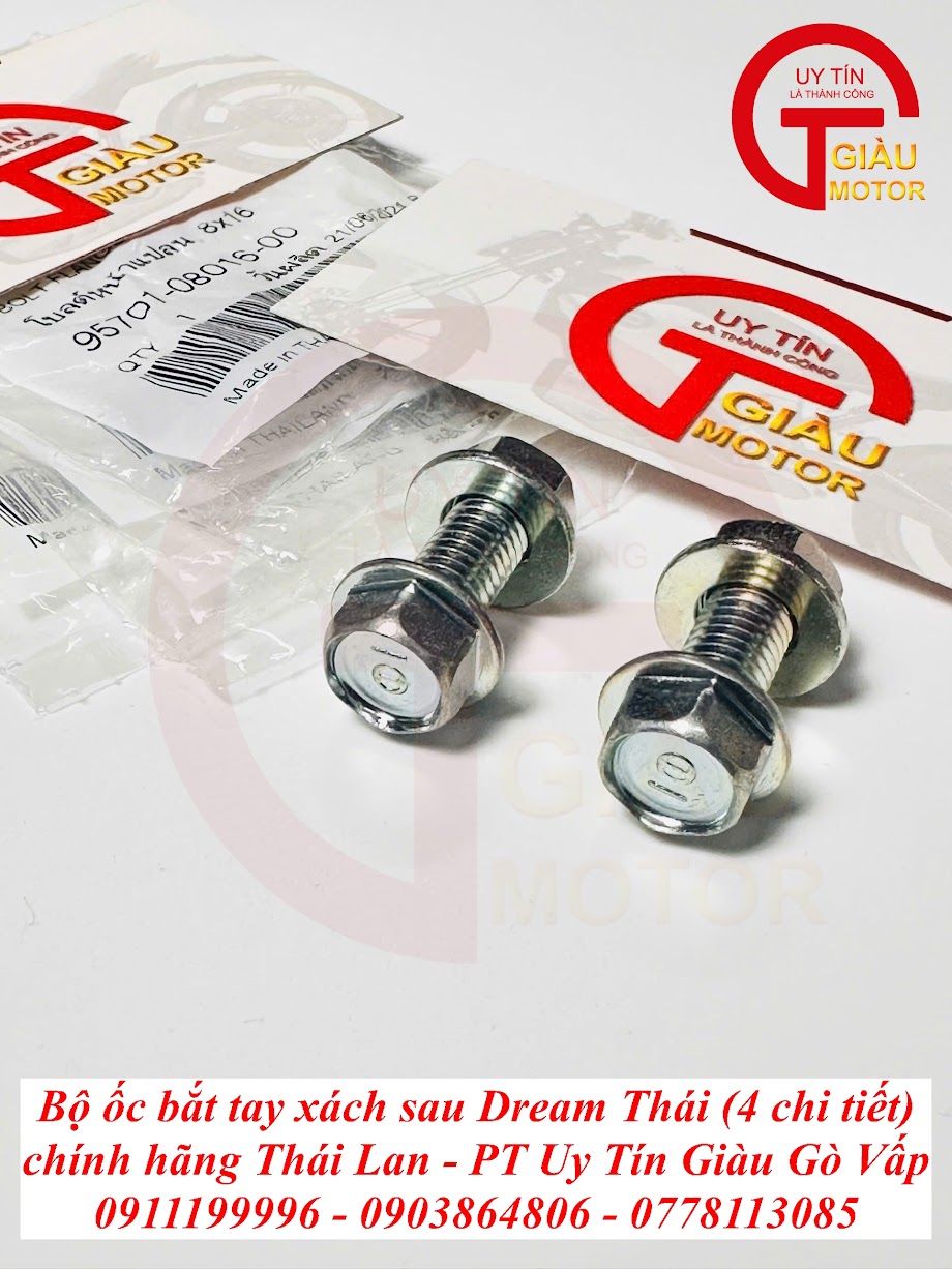 Đừng để những chi tiết nhỏ làm giảm đi đẳng cấp và sự an toàn của chiếc Dream Thái huyền thoại! Hãy đến ngay Giàu Gò Vấp – cửa hàng phụ tùng xe máy uy tín hàng đầu tại TP. Hồ Chí Minh, chuyên cung cấp Bộ Ốc Bắt Tay Xách Sau Dream Thái Chính Hãng Thái Lan. Chúng tôi cam kết mang lại sự chắc chắn, bền đẹp và vẻ ngoài hoàn hảo chuẩn "zin" Thái cho "xế cưng" của bạn!
