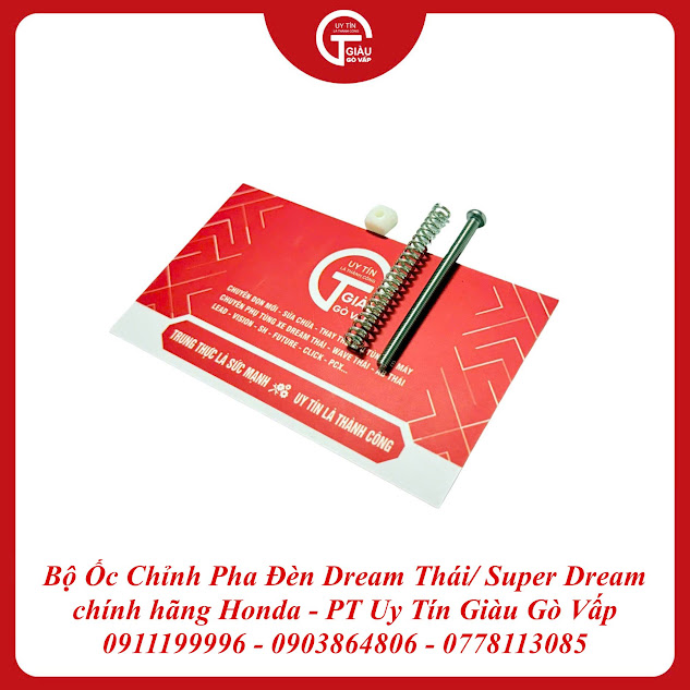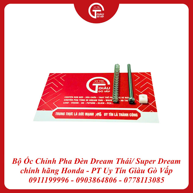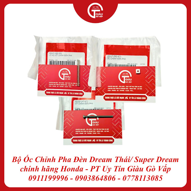 Trong hệ thống chiếu sáng của dòng xe Dream, Bộ Ốc Chỉnh Pha Đèn là chi tiết kỹ thuật cực kỳ quan trọng giúp người lái điều chỉnh góc chiếu cao/thấp của ánh sáng phù hợp với điều kiện đường xá. Một bộ ốc chỉnh bị hỏng không chỉ khiến đèn pha chiếu sai lệch gây chói mắt người đối diện mà còn làm mất đi tính thẩm mỹ của cụm đầu đèn. Tại Giàu Gò Vấp, chúng tôi cung cấp trọn bộ Ốc Chỉnh Pha Đèn (3 chi tiết) Chính Hãng Việt, giúp bạn làm chủ tầm nhìn và vận hành an toàn hơn.