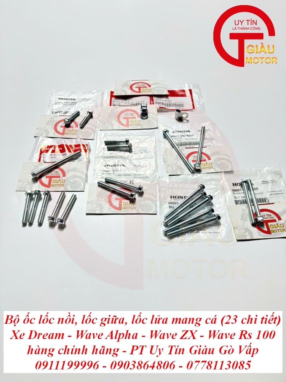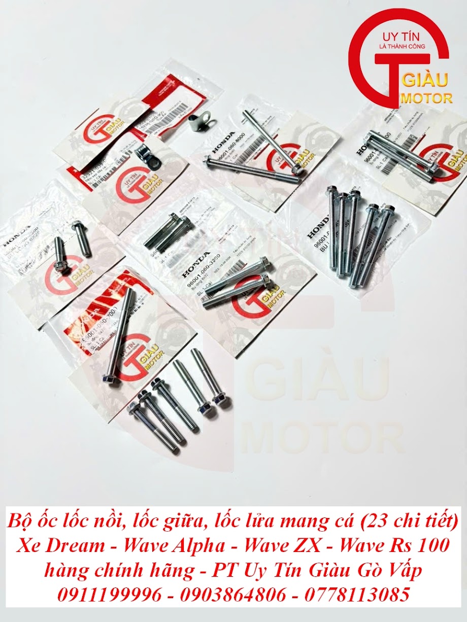 Cửa hàng phụ tùng Giàu Gò Vấp, tọa lạc tại 18 Nguyễn Duy Cung, Phường 12, Quận Gò Vấp, TP. Hồ Chí Minh, là địa chỉ tin cậy để bạn mua Bộ Ốc Lốc Nồi, Lốc Giữa, Lốc Lửa Mang Cá Chính Hãng cho các dòng xe Dream, Wave Alpha, Wave ZX và Wave RS 100.