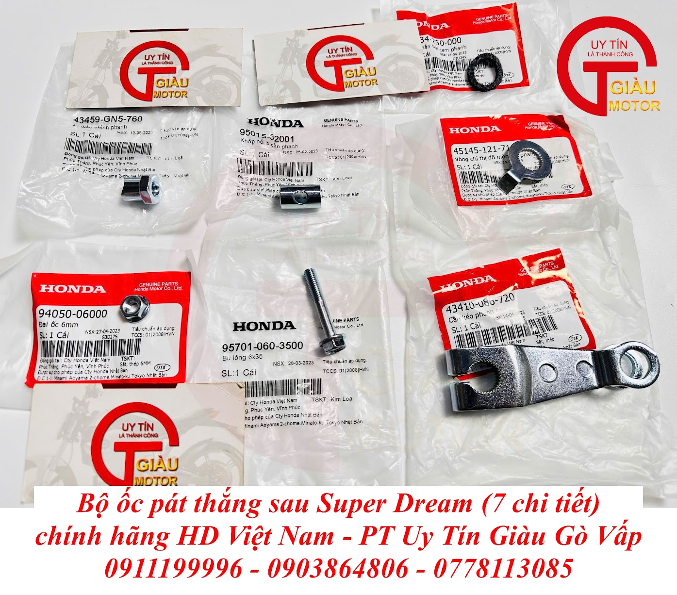 Đừng để chiếc xe Super Dream của bạn mất đi sự an toàn và giá trị vốn có vì hệ thống phanh đã xuống cấp. Hãy đến ngay Giàu Gò Vấp để trang bị Bộ Ốc Pát Thắng Sau Chính Hãng và tận hưởng cảm giác lái xe an toàn, tự tin và hoàn hảo hơn bao giờ hết!