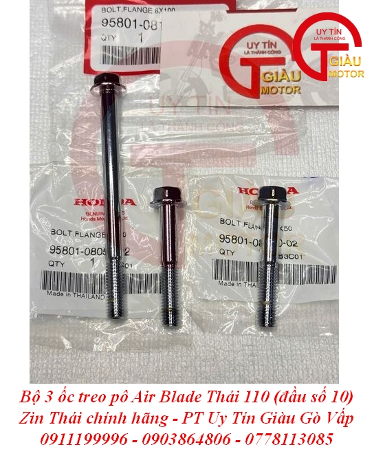 Hãy nhanh tay sở hữu Bộ Ốc Treo Pô Air Blade Thái 110 (Đầu Số 10) Chính Hãng Thái Lan tại Giàu Gò Vấp để mang lại sự ổn định và bền bỉ tuyệt đối cho chiếc xe của bạn.