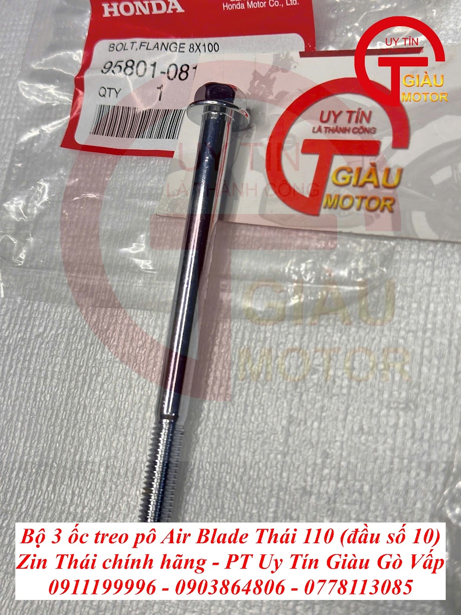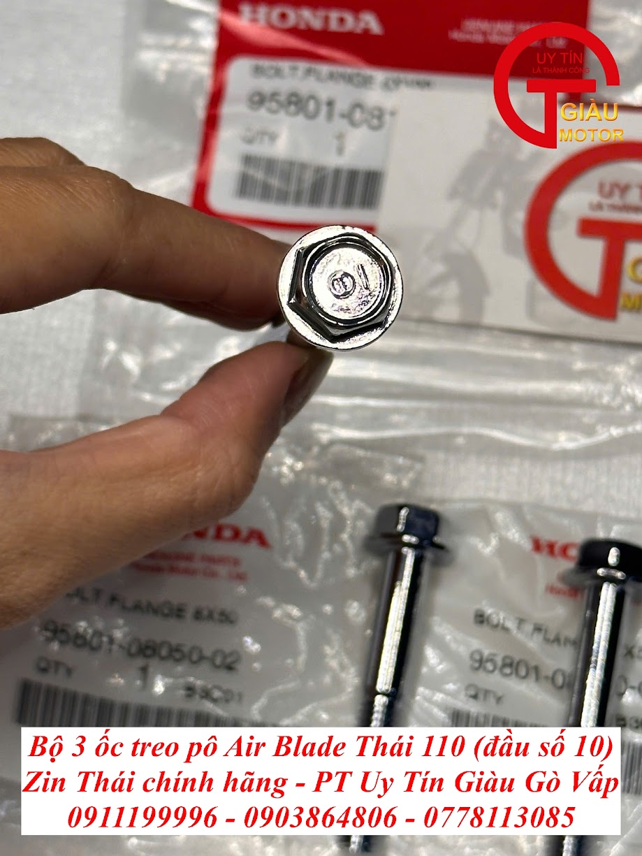 Hãy nhanh tay sở hữu Bộ Ốc Treo Pô Air Blade Thái 110 (Đầu Số 10) Zin Thái Chính Hãng Honda Thái Lan tại Giàu Gò Vấp để mang lại sự ổn định và bền bỉ tuyệt đối cho chiếc xe của bạn.