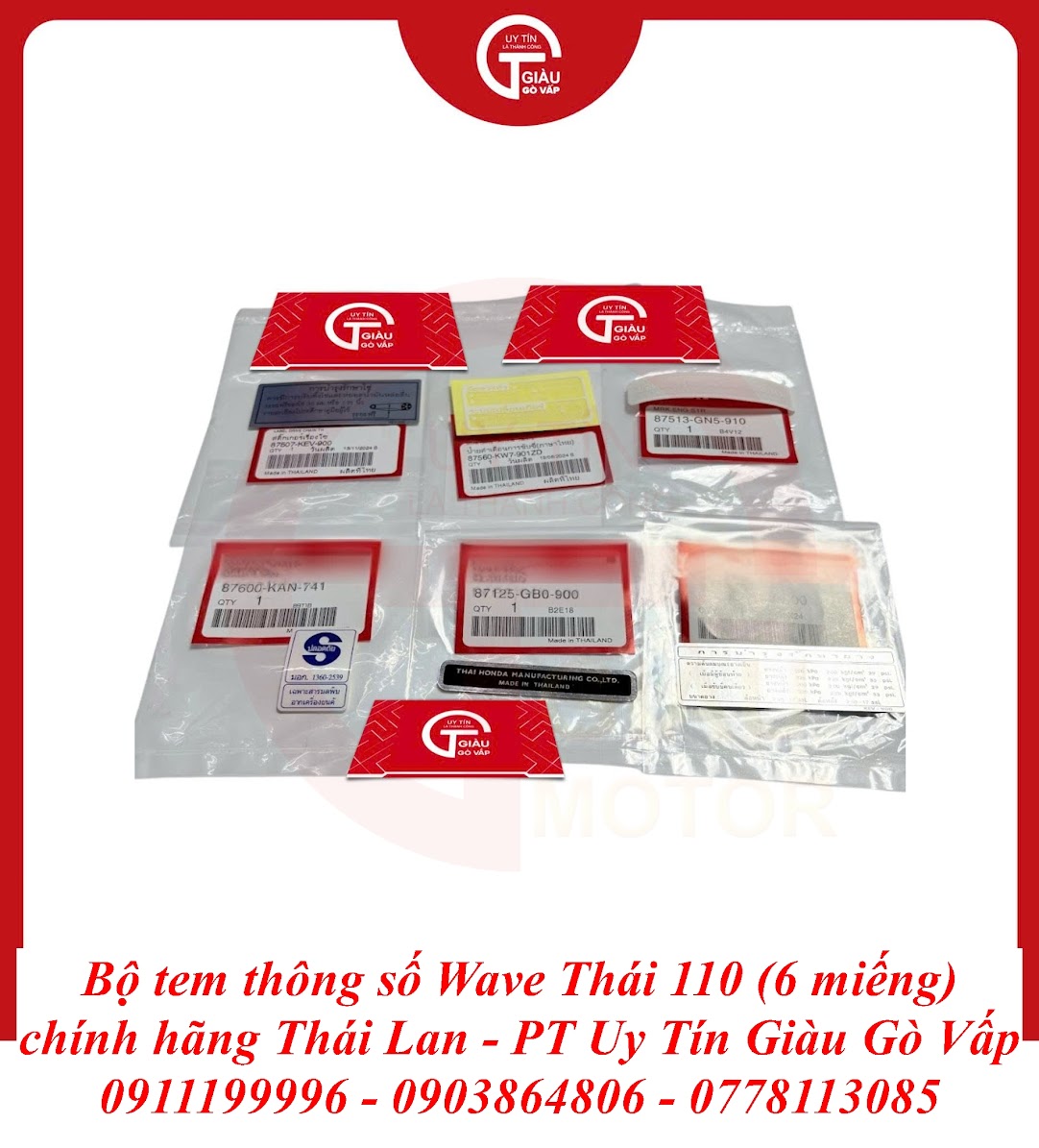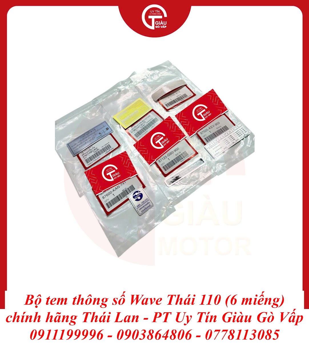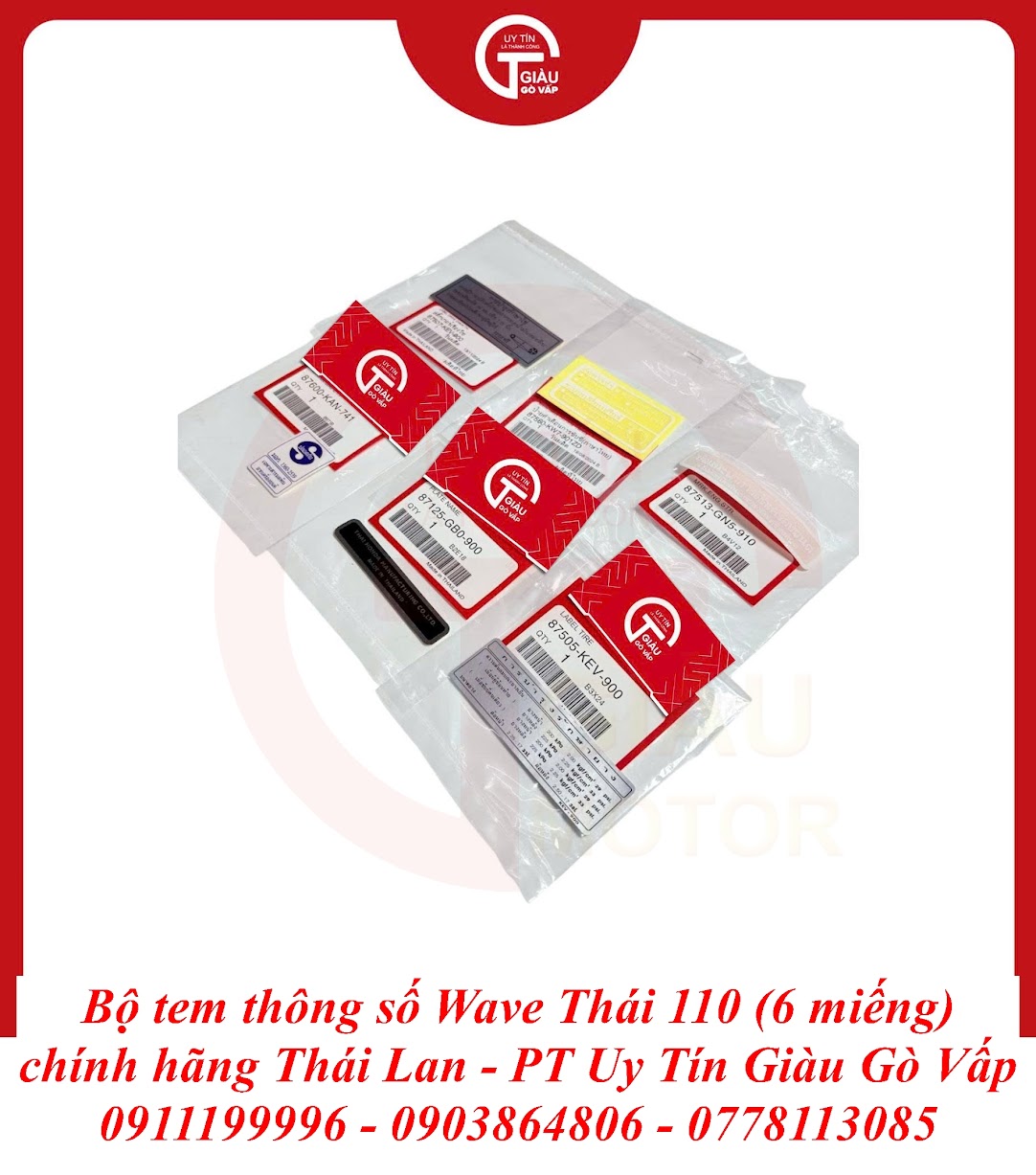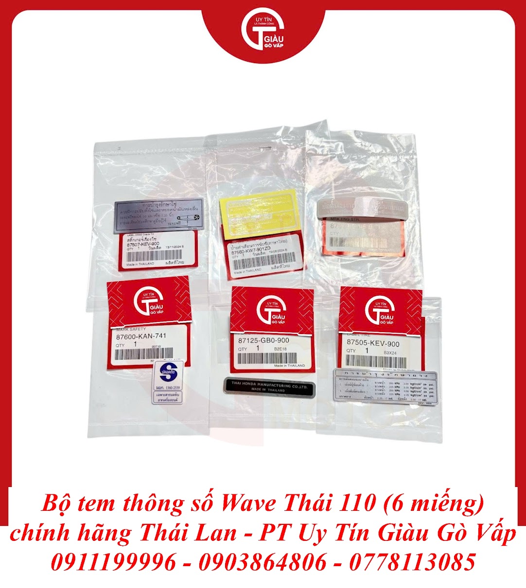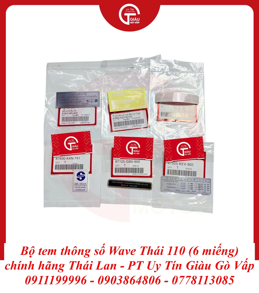 Giàu Gò Vấp là địa chỉ uy tín được cộng đồng người chơi xe Wave Thái 110 và người dùng xe máy lâu năm tại TP. Hồ Chí Minh tin tưởng. Chúng tôi cam kết mang đến cho bạn sản phẩm Bộ Tem Thông Số Wave Thái 110 Chất Lượng Cao Thái Lan với: