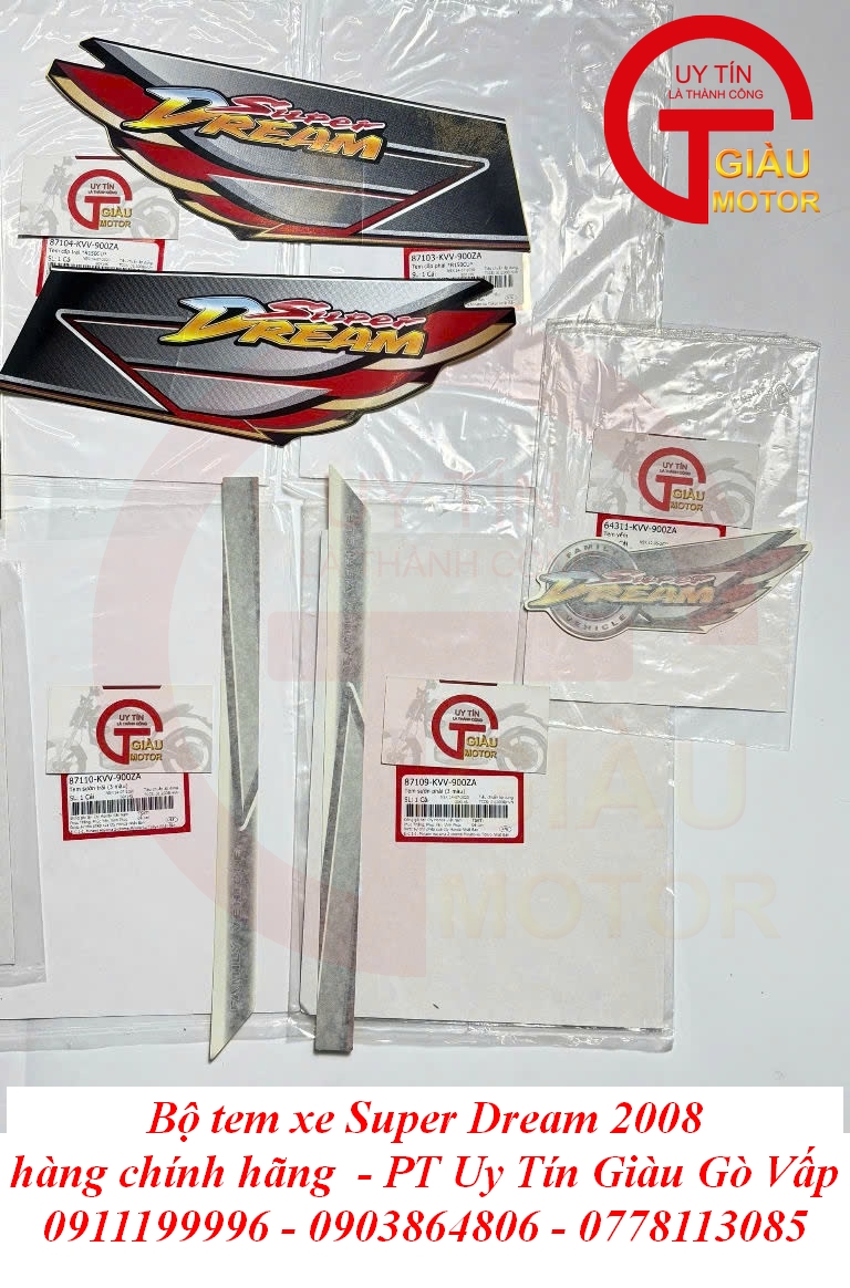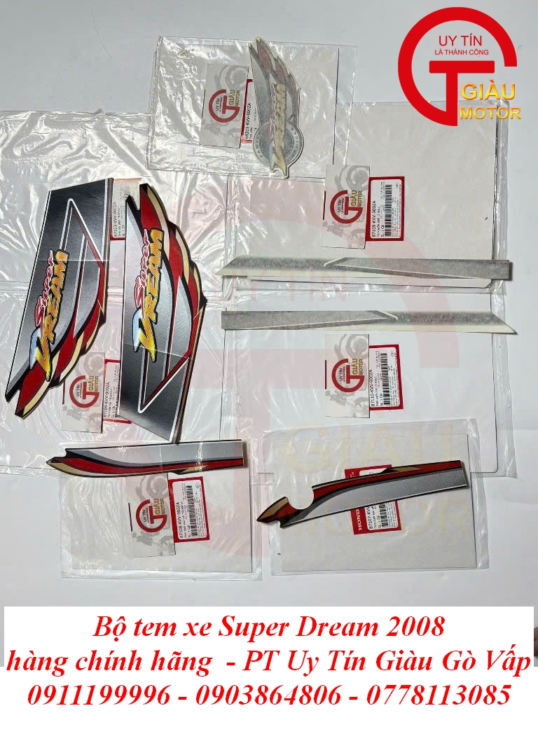 Đừng chần chừ! Hãy tái sinh vẻ đẹp cho chiếc Super Dream 2008 của bạn bằng cách sở hữu ngay Bộ Tem Xe Super Dream 2008 Chính Hãng tại Giàu Gò Vấp để chiếc xe luôn nổi bật và giữ trọn giá trị huyền thoại!