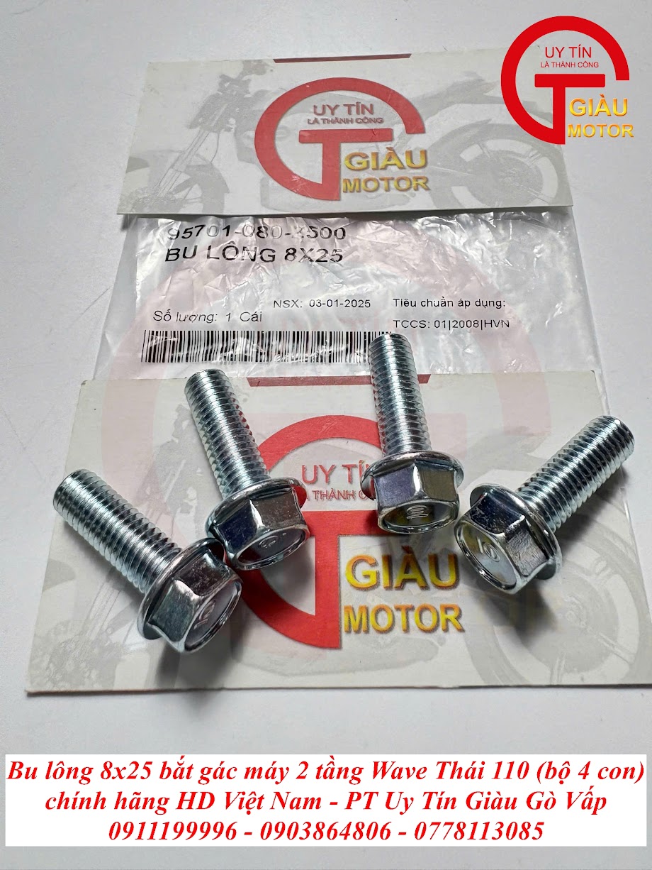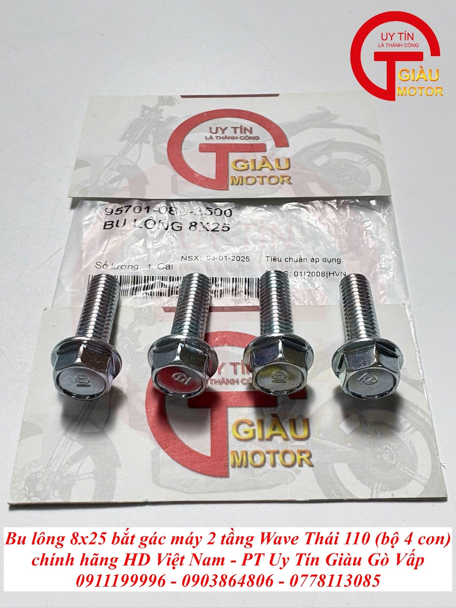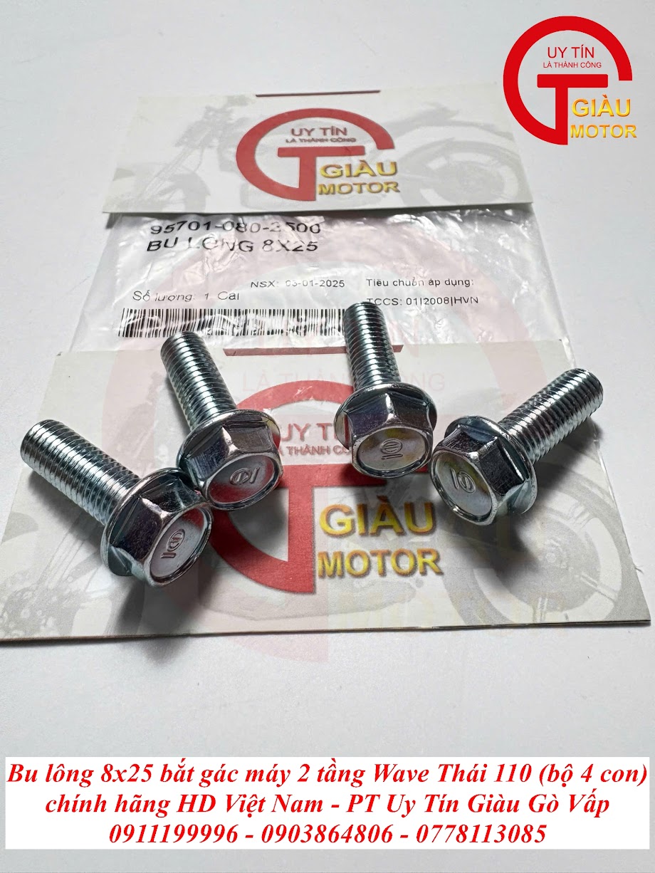 Tại Giàu Gò Vấp, chúng tôi tự hào mang đến Bộ 4 Con Bu Lông 8x25 Bắt Gác Máy 2 Tầng Wave Thái 110 Chính Hãng với những cam kết vượt trội: