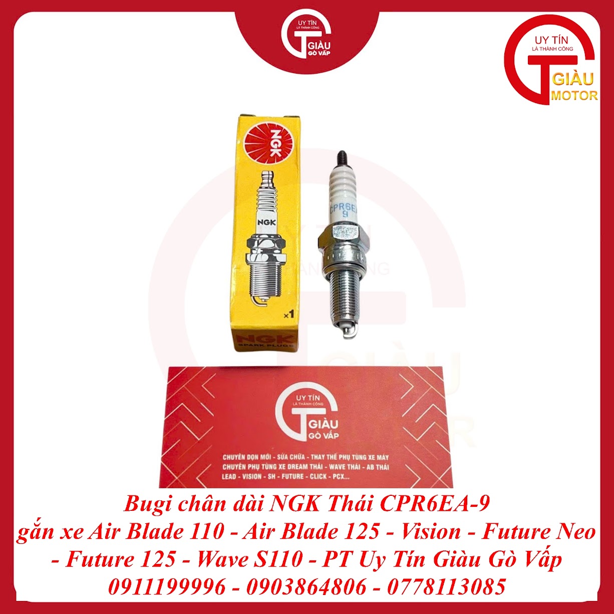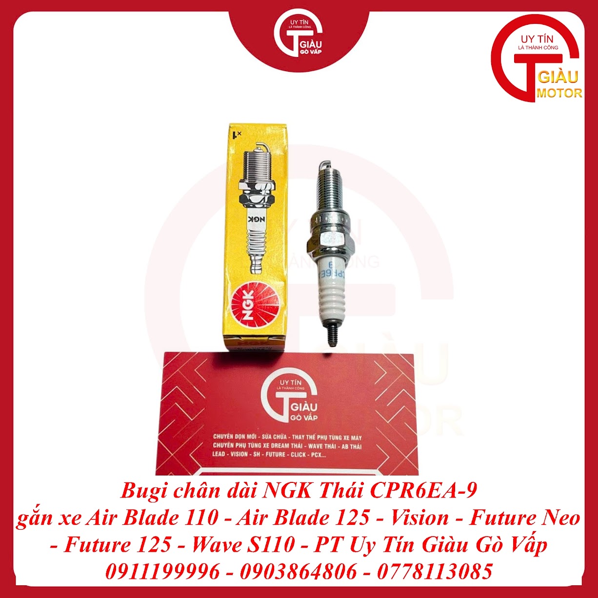 #BugiXeMáy #BugiNGK #BugiCPREA9 #BugiAirBlade #BugiVision #BugiFuture #BugiWave #PhụTùngChínhHãng #GiauGoVap #PhuTungXeMayChinhHang Bugi Chân Dài NGK Thái CPR6EA-9 Bugi Chân Dài NGK Thái CPR6EA-9