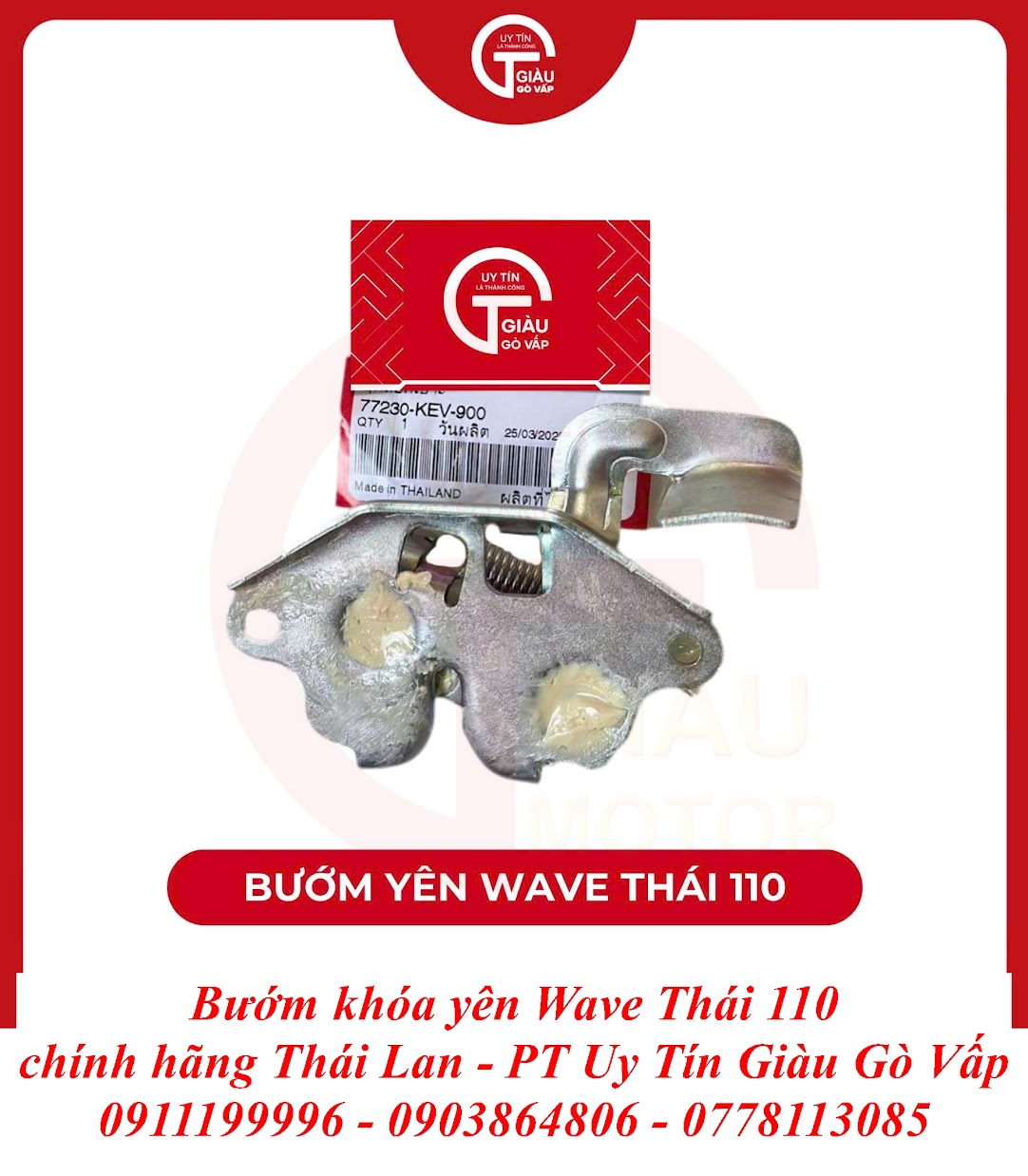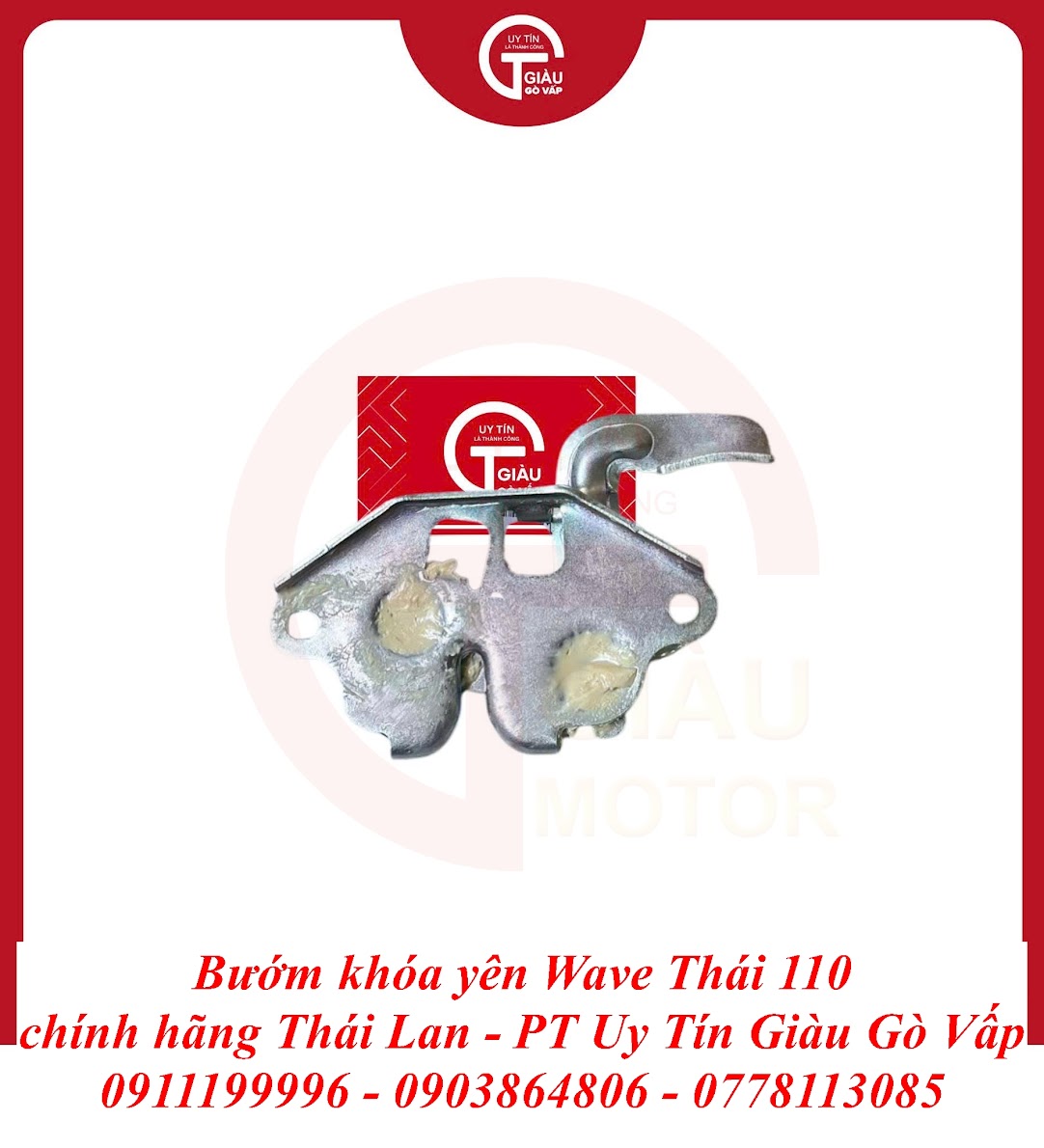 Giàu Gò Vấp là địa chỉ uy tín được cộng đồng người chơi xe Wave Thái 110 và người dùng xe máy lâu năm tại TP. Hồ Chí Minh tin tưởng. Chúng tôi cam kết mang đến cho bạn sản phẩm Bướm Khóa Yên Wave Thái 110 Chất Lượng Cao Thái Lan với: