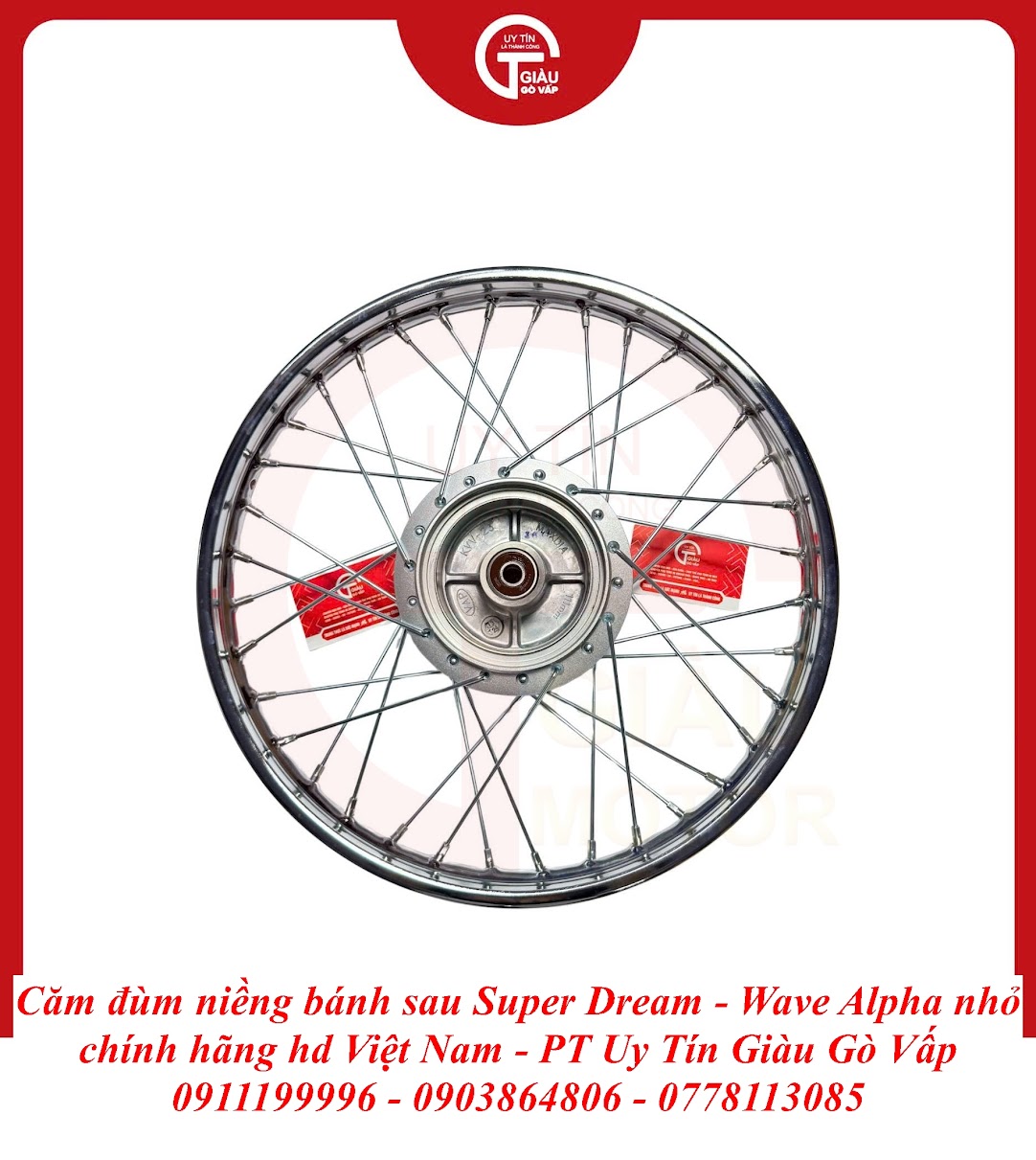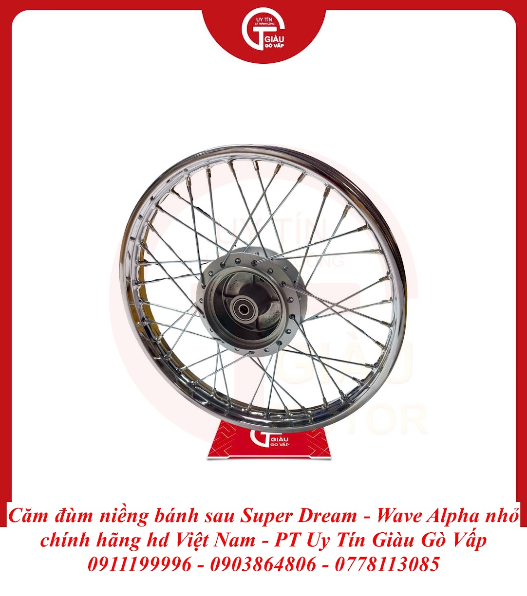 Trong cấu trúc dàn chân của những dòng xe huyền thoại như Super Dream và Wave Alpha Nhỏ, bộ bánh sau đóng vai trò cực kỳ quan trọng vì đây là nơi chịu tải trọng chính và truyền lực đẩy từ động cơ. Bộ Căm Đùm Niềng Bánh Sau sau thời gian dài sử dụng thường gặp các tình trạng: niềng bị mục lủng chân căm do nước mưa, căm bị rỉ sét mất thẩm mỹ, hoặc đùm sau bị mòn sơ-mi bạc đạn gây hiện tượng sàn lắc, mất an toàn khi chở nặng hoặc chạy tốc độ cao.