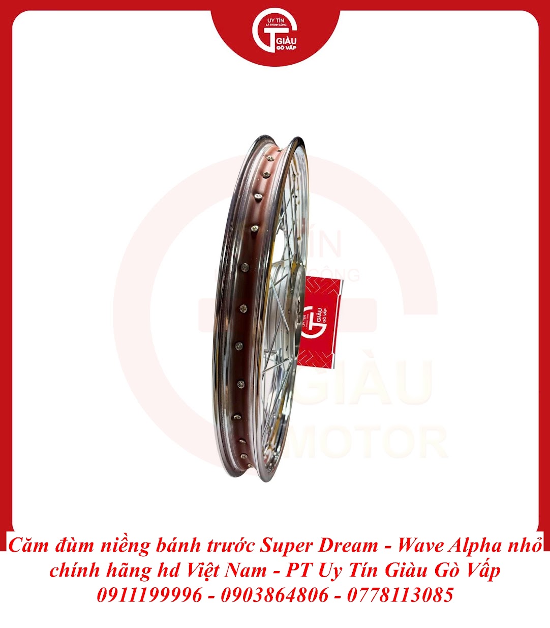 Việc phục dựng hoặc thay mới bằng Hàng Chính Hãng là lựa chọn thông minh nhất để giữ vững giá trị chiếc xe và đảm bảo an toàn tuyệt đối. Tại Giàu Gò Vấp, chúng tôi cung cấp trọn bộ Căm Đùm Niềng Bánh Trước Chính Hãng, giúp xế yêu của bạn lấy lại vẻ đẹp rạng ngời và khả năng vận hành mượt mà như ngày đầu.