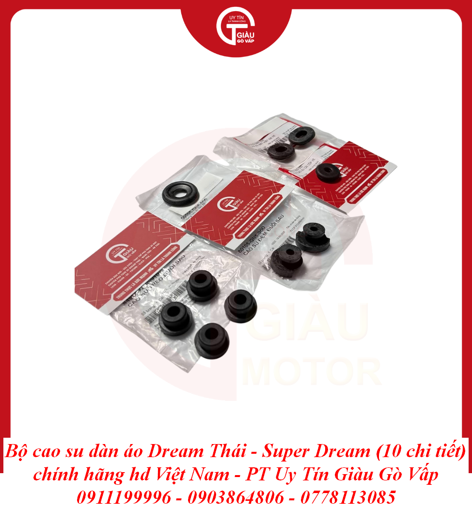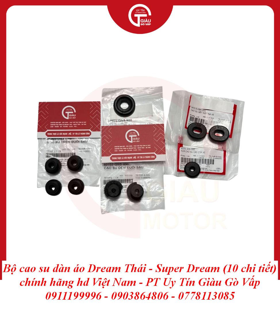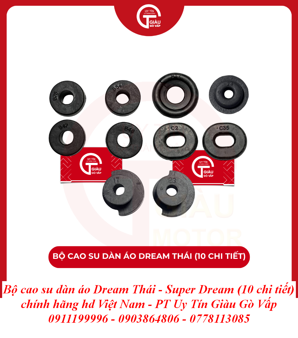 Trong kết cấu của những dòng xe huyền thoại như Dream Thái và Super Dream, Bộ Cao Su Dàn Áo đóng vai trò là lớp đệm trung gian giữa khung sườn kim loại và các chi tiết nhựa. Tuy là những chi tiết nhỏ nằm ẩn bên trong, nhưng chúng lại quyết định độ "êm" và sự chắc chắn của toàn bộ dàn áo. Một bộ cao su chính hãng sẽ giúp triệt tiêu các rung động từ động cơ, ngăn chặn tình trạng dàn nhựa bị rung rè, mang lại cảm giác lái đầm chắc và chỉn chu.