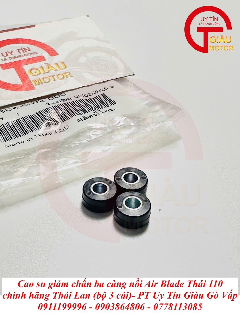 Đừng để những rung giật hay tiếng ồn làm giảm đi trải nghiệm lái xe đẳng cấp của bạn! Hãy đến ngay Giàu Gò Vấp – cửa hàng phụ tùng xe máy uy tín hàng đầu tại TP. Hồ Chí Minh, chuyên cung cấp Cao Su Giảm Chấn Ba Càng Nồi Air Blade Thái 110 Chính Hãng Thái Lan. Chúng tôi cam kết mang lại sự êm ái, mượt mà và bền bỉ chuẩn "zin" Thái cho chiếc Air Blade của bạn!