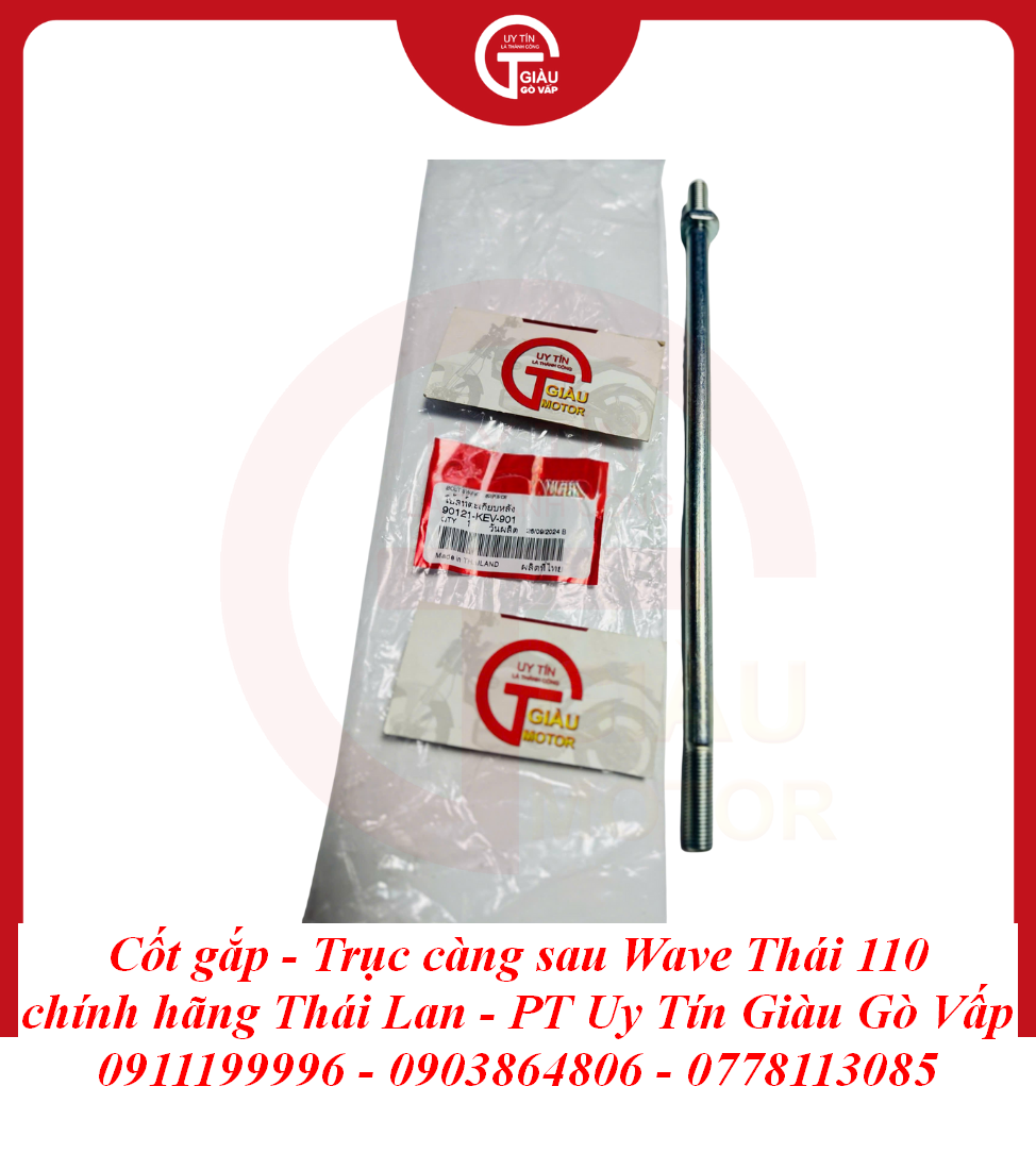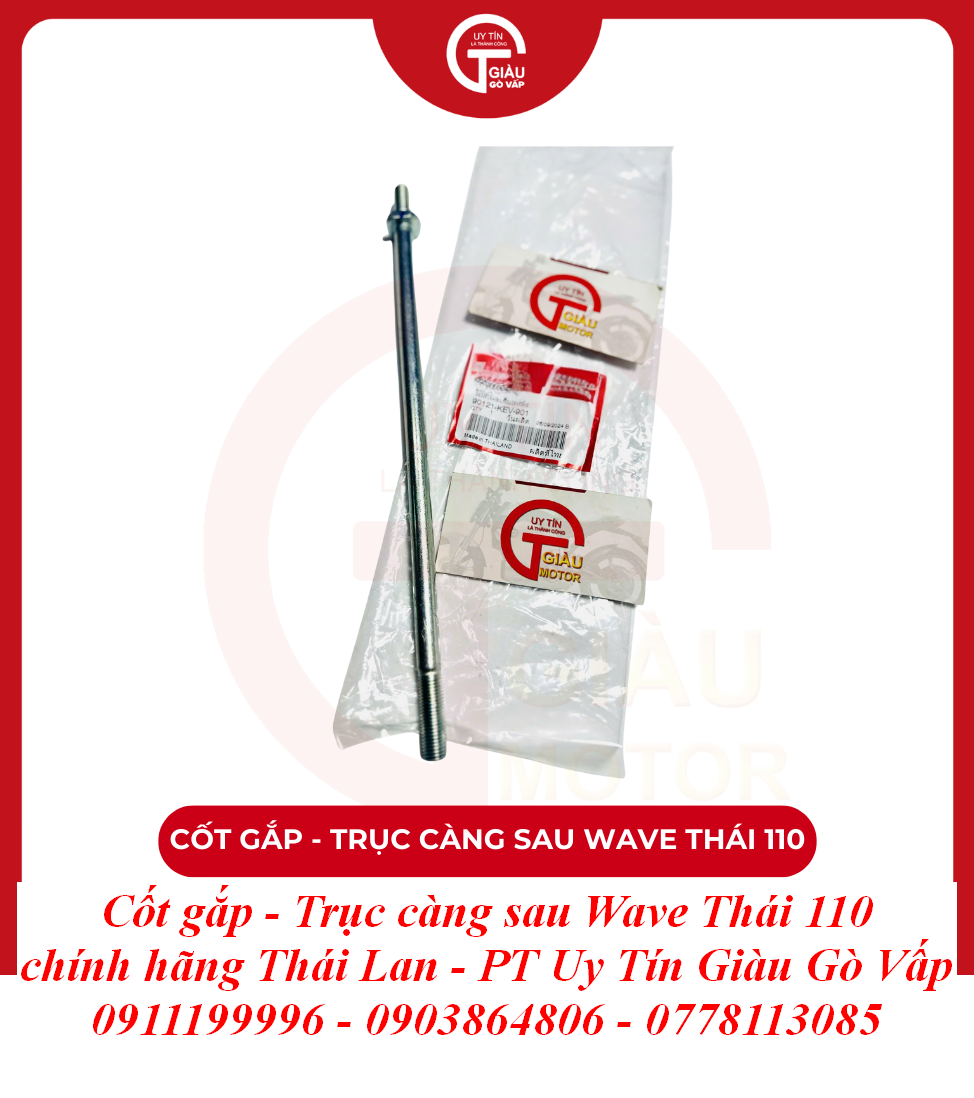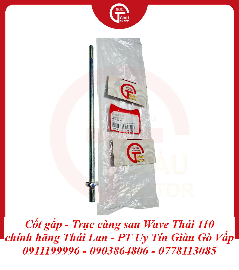 Giàu Gò Vấp là địa chỉ uy tín được cộng đồng người chơi xe Wave Thái 110 và người dùng xe máy lâu năm tại TP. Hồ Chí Minh tin tưởng. Chúng tôi cam kết mang đến cho bạn sản phẩm Cốt Gắp - Trục Càng Sau Wave Thái 110 Chất Lượng Cao Thái Lan với: