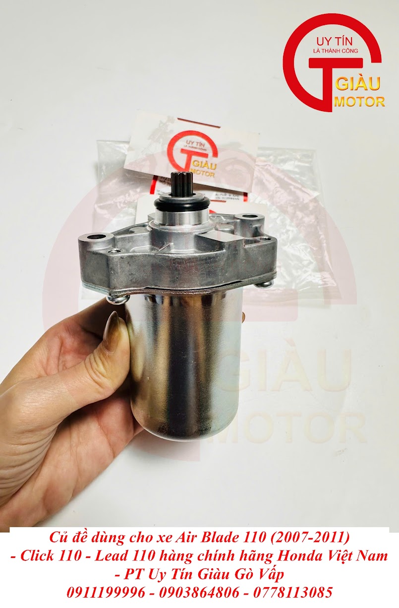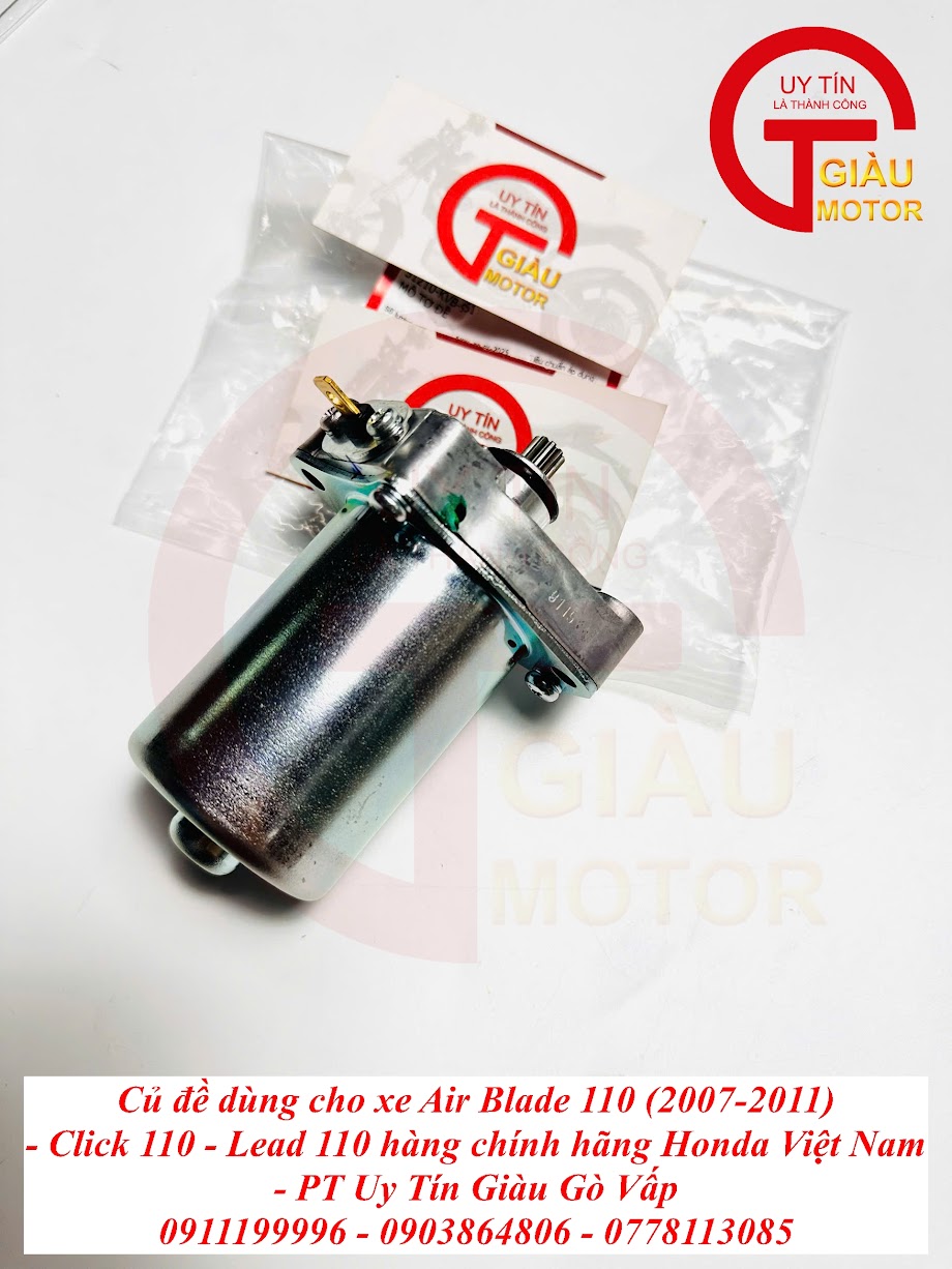 Bạn đang tìm mua củ đề (mô tơ đề) chính hãng cho các dòng xe tay ga phổ biến như Air Blade 110 đời 2007-2011, Click 110, Lead 110? Hãy đến ngay Giàu Gò Vấp, cửa hàng phụ tùng xe máy uy tín hàng đầu tại TP. Hồ Chí Minh để được mua hàng chính hãng Honda Việt, chất lượng cao và giá tốt nhất thị trường!