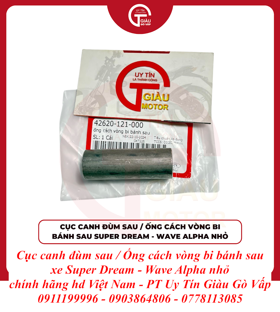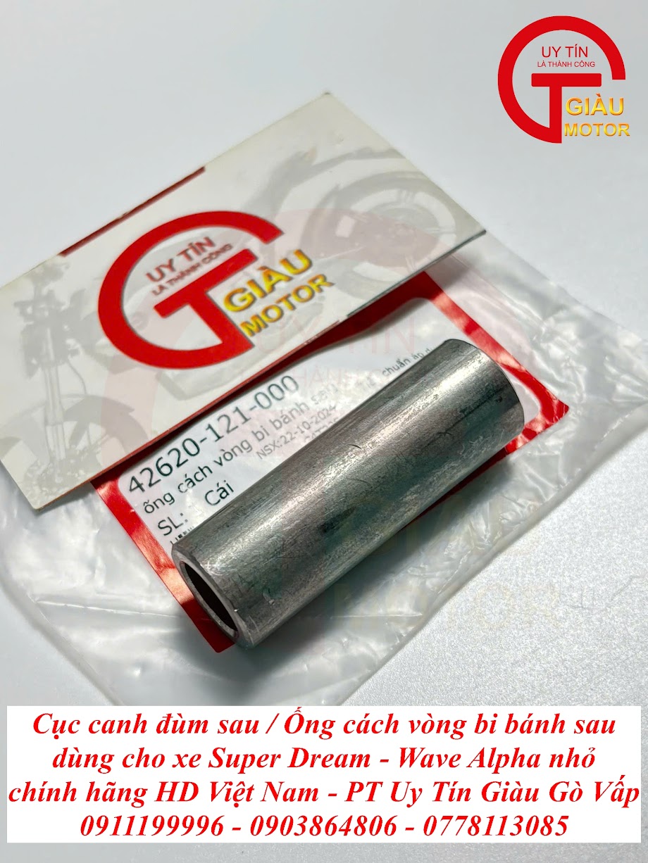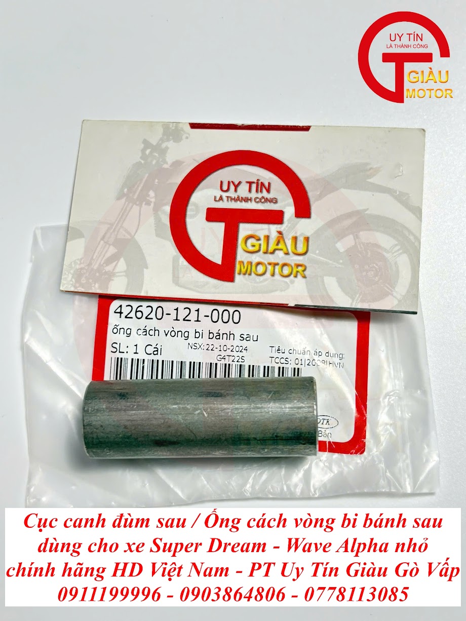 Đừng để chiếc Super Dream hay Wave Alpha Nhỏ của bạn bị lắc bánh sau hay nhanh hỏng bạc đạn vì cục canh đùm đã xuống cấp. Hãy đến ngay Giàu Gò Vấp để trang bị Cục Canh Đùm Sau - Ống Cách Vòng Bi Bánh Sau Super Dream - Wave Alpha Nhỏ Chính Hãng và tận hưởng cảm giác lái xe an toàn, ổn định và êm ái trên mọi cung đường!