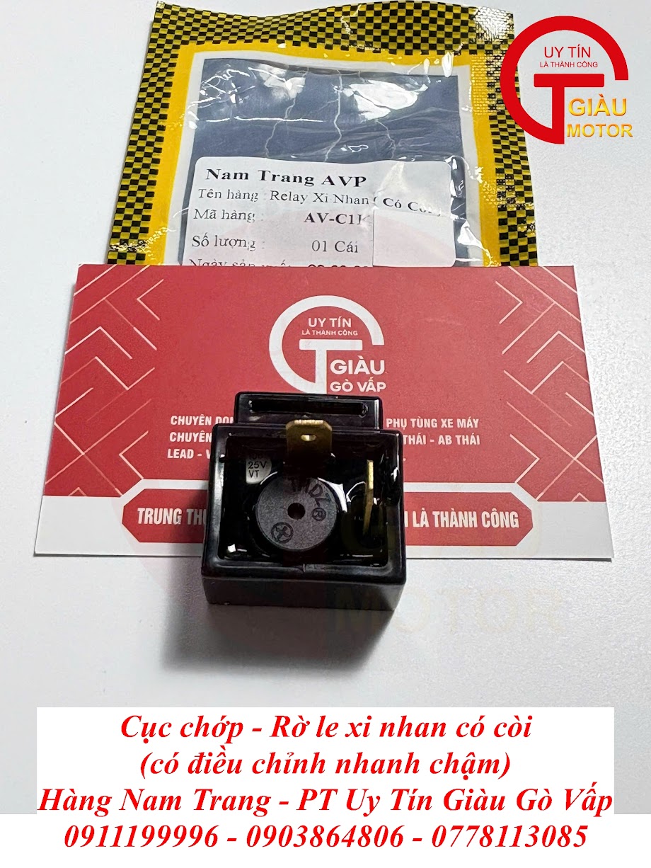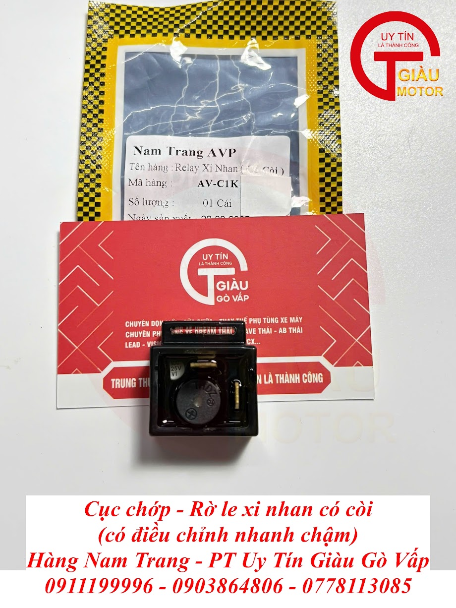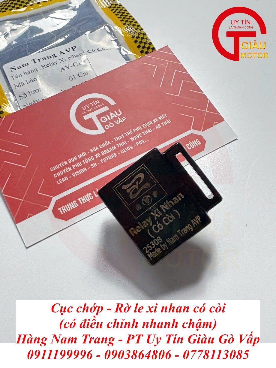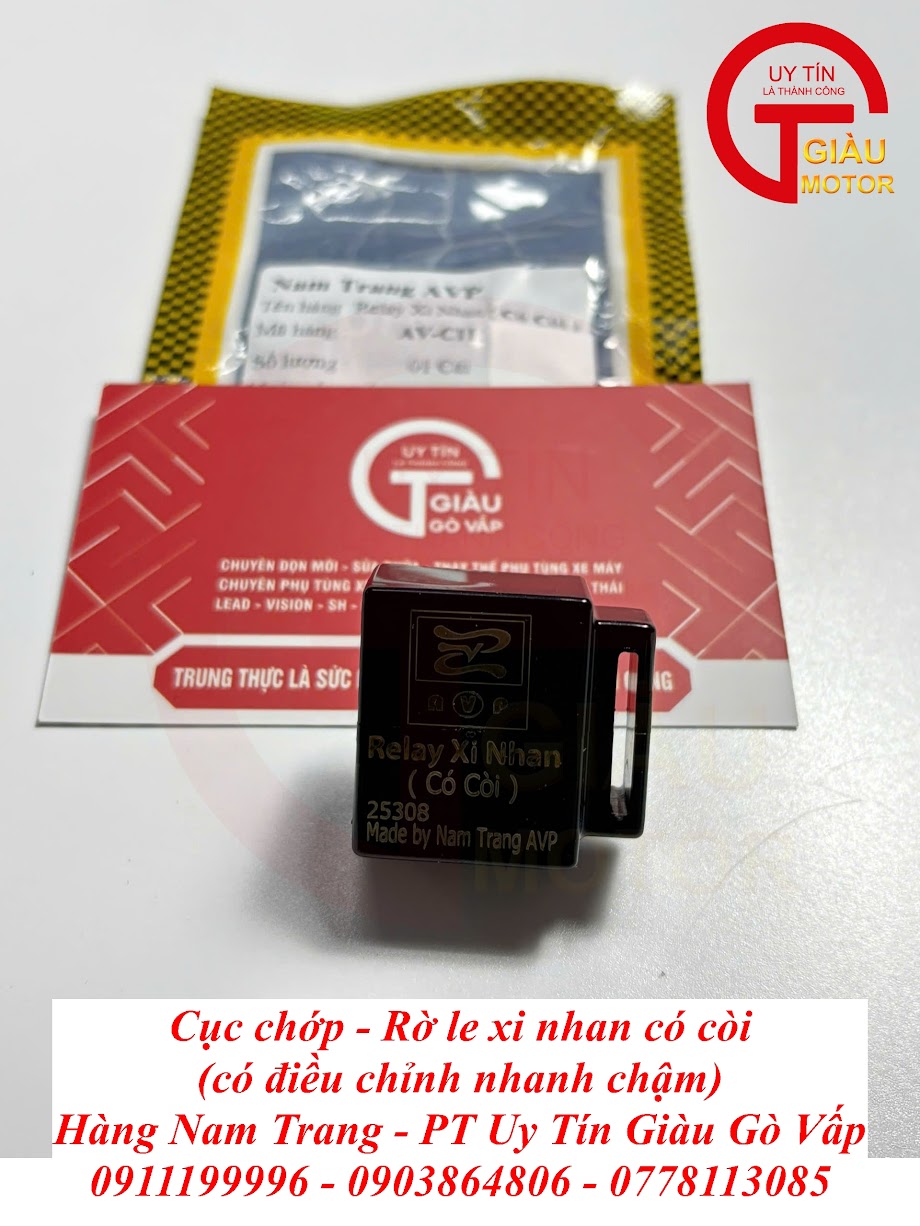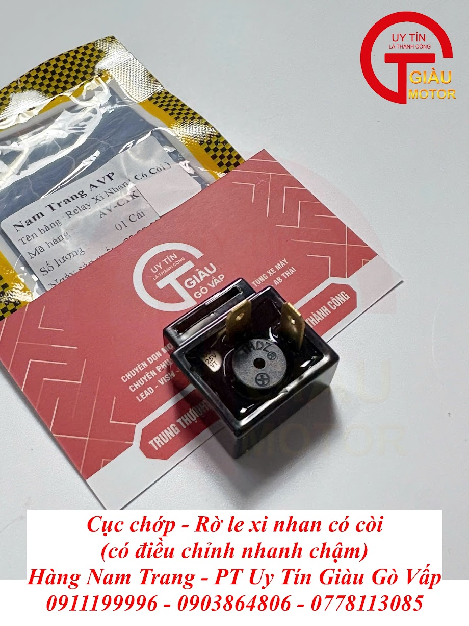Đừng lo lắng, hãy đến ngay Giàu Gò Vấp – cửa hàng phụ tùng xe máy uy tín hàng đầu tại TP. Hồ Chí Minh, chuyên cung cấp Cục Chớp - Rờ Le Xi Nhan Có Còi Hàng Nam Trang. Đây là một sản phẩm tiện ích, giúp bạn nâng cao an toàn khi tham gia giao thông mà không cần phải thay đổi cấu trúc xe!