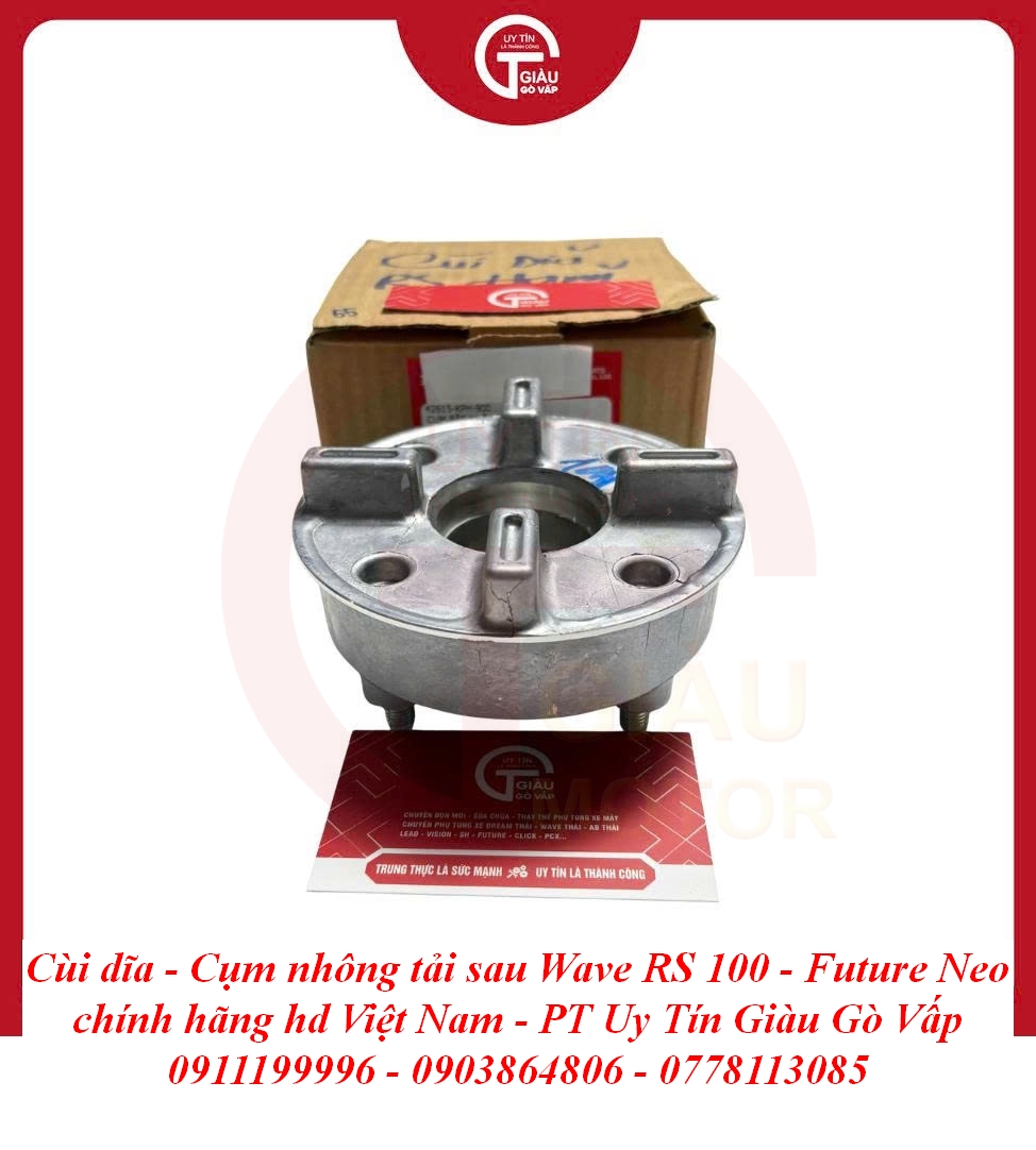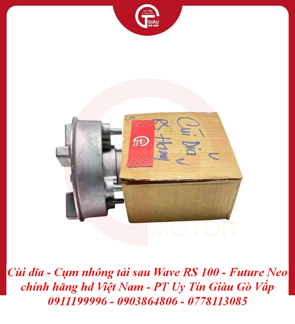 Giàu Gò Vấp là địa chỉ uy tín được cộng đồng người chơi xe Wave và Future lâu năm tại TP. Hồ Chí Minh tin tưởng. Chúng tôi cam kết mang đến cho bạn sản phẩm Cùi Dĩa / Cụm Nhông Tải Sau Wave RS 100 - Future Neo Chất Lượng Cao với: