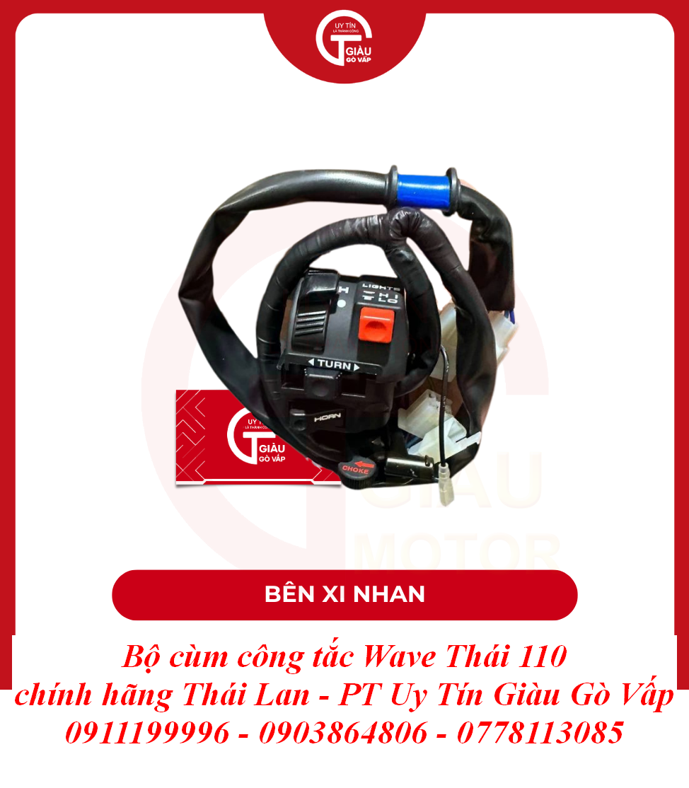 Giàu Gò Vấp là địa chỉ uy tín được cộng đồng người chơi xe Wave Thái 110 và người dùng xe máy lâu năm tại TP. Hồ Chí Minh tin tưởng. Chúng tôi cam kết mang đến cho bạn sản phẩm Cùm Công Tắc Wave Thái 110 Chất Lượng Cao Thái Lan với: