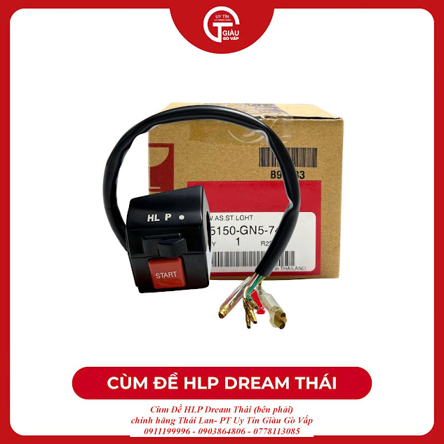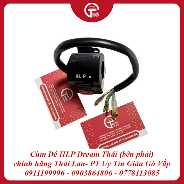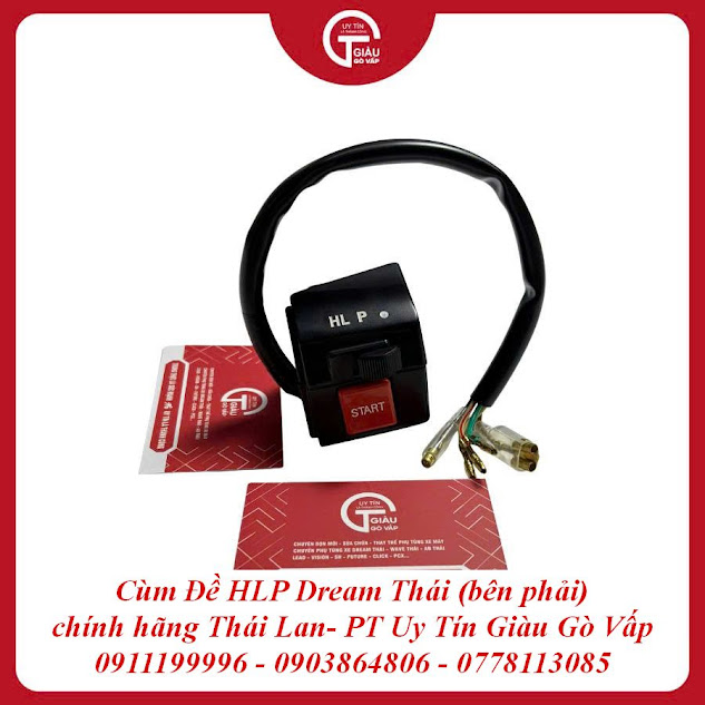 Trong hệ thống điều khiển của xe Dream Thái, Cùm Đề (bên phải) đóng vai trò quan trọng giúp bạn khởi động xe và điều khiển hệ thống đèn pha một cách linh hoạt. Một bộ cùm chất lượng không chỉ mang lại sự tiện lợi mà còn giữ trọn vẻ đẹp hoài cổ của dòng xe huyền thoại. Tại Giàu Gò Vấp, chúng tôi cung cấp Cùm Đề HLP Chính Hãng Thái Lan, giúp xế yêu của bạn lấy lại cảm giác bấm "chuẩn zin" và độ bền vượt thời gian.