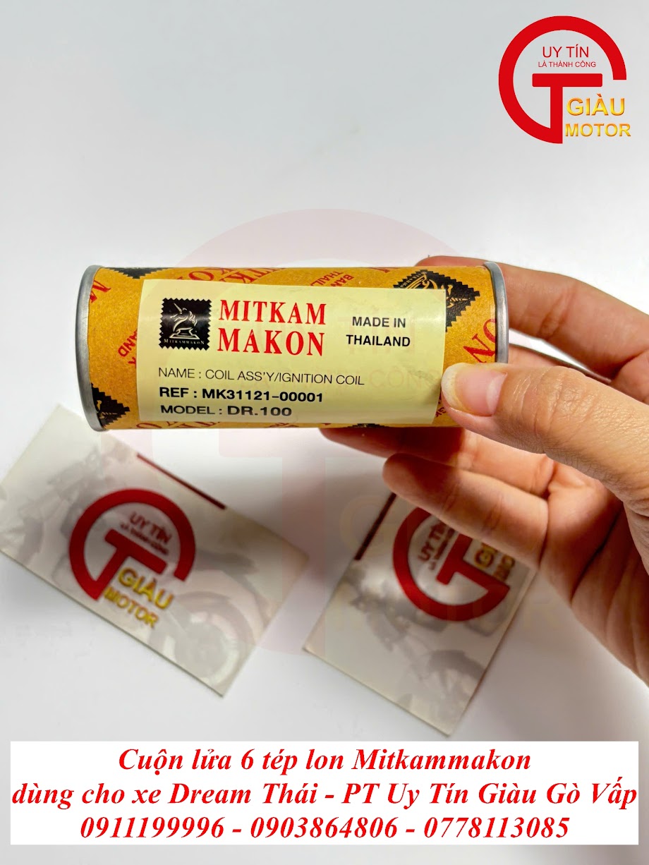 Đừng để những vấn đề này làm giảm đi trải nghiệm lái xe và sự an toàn của bạn! Hãy đến ngay Giàu Gò Vấp – cửa hàng phụ tùng xe máy uy tín hàng đầu tại TP. Hồ Chí Minh, chuyên cung cấp Cuộn Lửa 6 Tép Lon Mitkammakon Dùng Cho Xe Dream Thái. Đây là sản phẩm được đánh giá cao, đảm bảo hệ thống điện hoạt động ổn định, động cơ mạnh mẽ, dễ nổ, độ bền bỉ đáng kinh ngạc và giá tốt nhất!