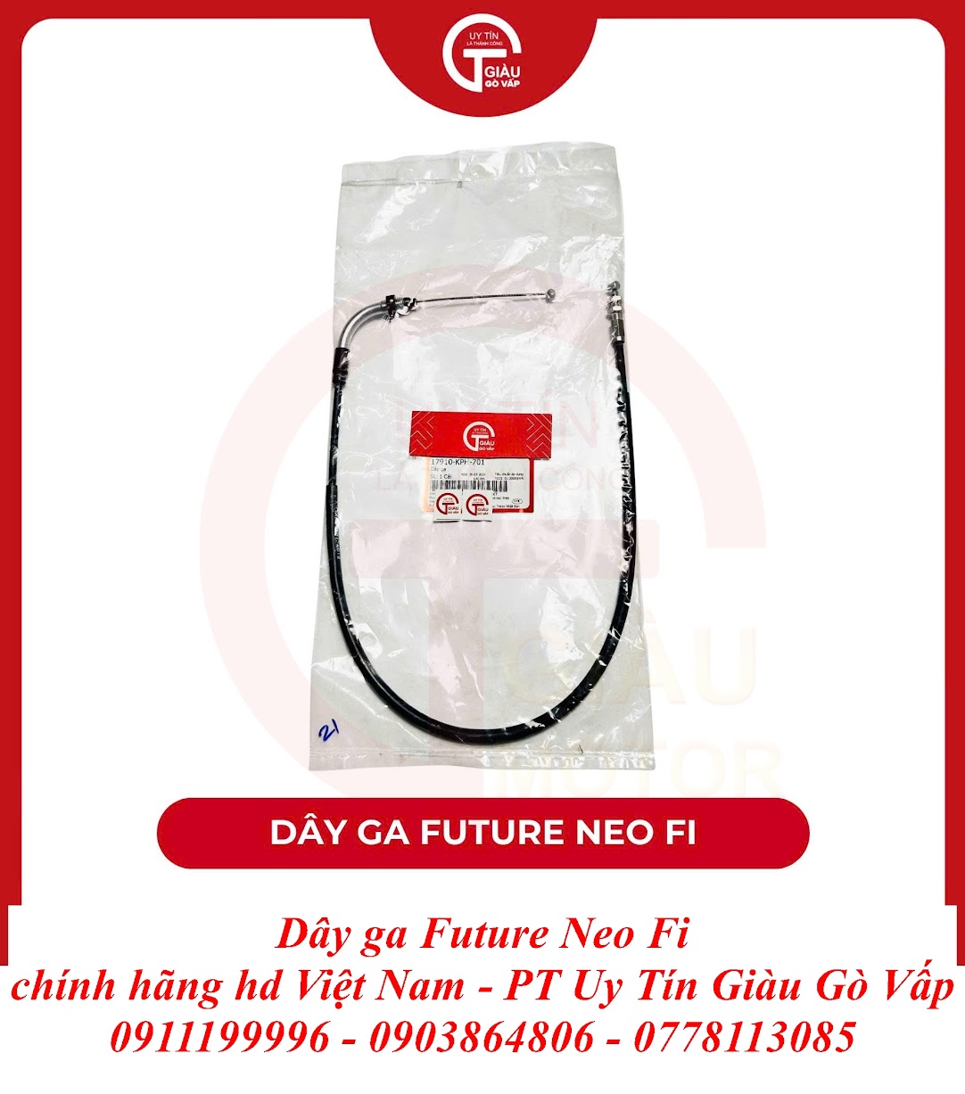 Đối với dòng xe phun xăng điện tử đời đầu như Future Neo FI, hệ thống dây ga (thường là dây ga kép) đóng vai trò cực kỳ quan trọng trong việc truyền tải tín hiệu từ tay ga đến họng ga. Một bộ Dây Ga Chính Hãng đảm bảo độ phản hồi tức thì, giúp bạn kiểm soát tốc độ một cách nhạy bén, mượt mà và an toàn nhất.