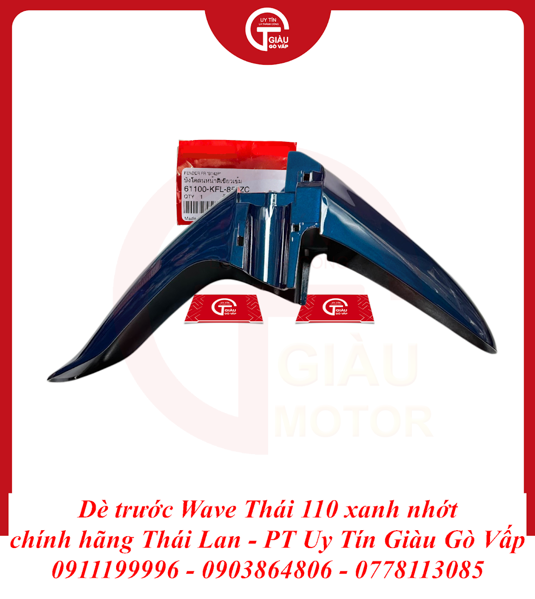 Giàu Gò Vấp là địa chỉ uy tín được cộng đồng người chơi xe Wave Thái 110 và người dùng xe máy lâu năm tại TP. Hồ Chí Minh tin tưởng. Chúng tôi cam kết mang đến cho bạn sản phẩm Dè Trước Wave Thái 110 Xanh Nhớt Chất Lượng Cao Thái Lan với: