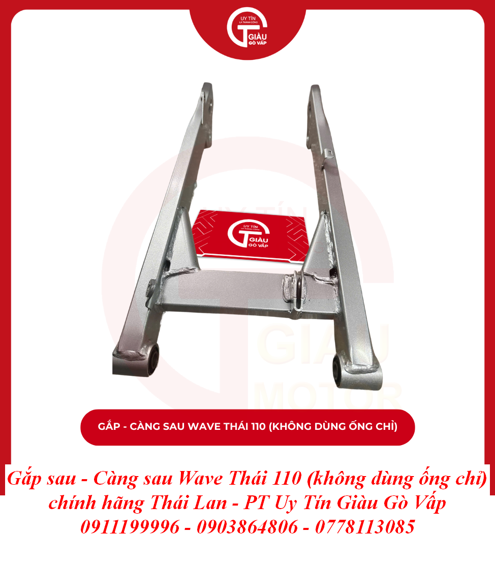 Gắp Wave Thái 110 Đời 2000 (Không Dùng Ống Chỉ) Chất Lượng Cao Thái Lan: Khôi Phục Sự Ổn Định, Chống Sàn Lắc Tuyệt Đối TOP 1! Bạn đang sở hữu chiếc xe số huyền thoại – Wave Thái 110 (phiên bản Đời 2000, đặc trưng với Gắp sau không dùng Ống Chỉ)? Gắp Xe (Càng Sau) là bộ phận xương sống, chịu toàn bộ lực tác động từ giảm xóc và bánh xe sau, quyết định 90% độ đầm và an toàn của xe khi vận hành. Sau nhiều năm sử dụng, liệu gắp xe bạn có còn nguyên vẹn,...