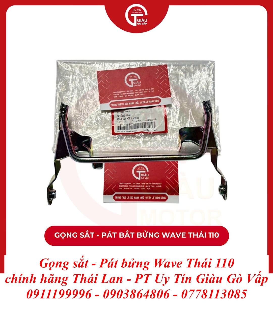 Giàu Gò Vấp là địa chỉ uy tín được cộng đồng người chơi xe Wave Thái 110 và người dùng xe máy lâu năm tại TP. Hồ Chí Minh tin tưởng. Chúng tôi cam kết mang đến cho bạn sản phẩm Gọng Sắt - Pát Bắt Bửng Wave Thái 110 Chất Lượng Cao Thái Lan với: