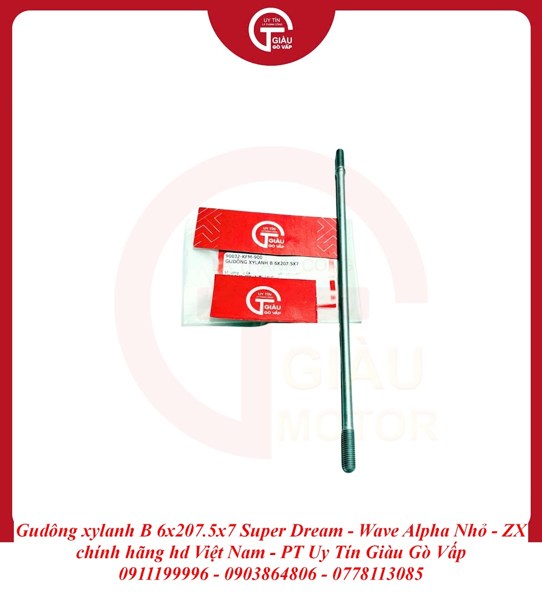 Trong khối động cơ của những dòng xe huyền thoại như Super Dream, Wave Alpha Nhỏ (lốc đen/lốc bạc) và Wave ZX, bộ Gudông Xylanh (Gu-dông đầu lòng) đóng vai trò là "xương sống" liên kết chặt chẽ giữa lốc máy, xylanh (lòng) và đầu quy-lát. Đặc biệt, cây Gudông B với thông số 6x207.5x7 yêu cầu độ chính xác tuyệt đối về chiều dài và khả năng chịu lực kéo cực lớn khi động cơ vận hành ở nhiệt độ cao.