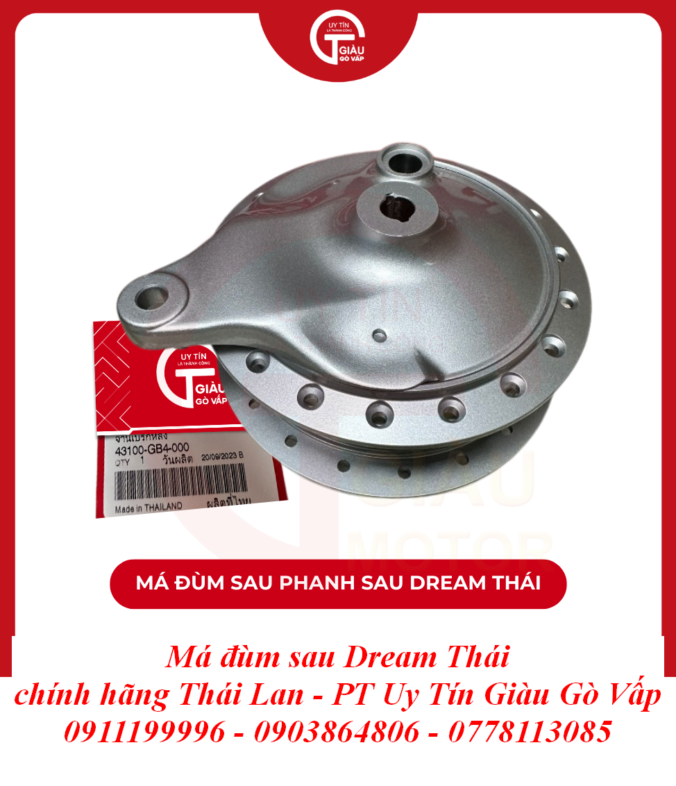 Trong hệ thống dàn chân của chiếc xe huyền thoại Dream Thái, Má Đùm Sau (hay còn gọi là bát phanh/nắp may-ơ) là bộ phận quan trọng không chỉ giữ nhiệm vụ cố định hệ thống bố thắng mà còn là chi tiết thẩm mỹ nổi bật. Một chiếc má đùm chính hãng từ Thái Lan với bề mặt nhôm mịn màng, màu sơn chuẩn xác sẽ giúp chiếc xe của bạn lấy lại vẻ đẹp nguyên bản và đảm bảo hiệu suất phanh an toàn nhất trên mọi hành trình.