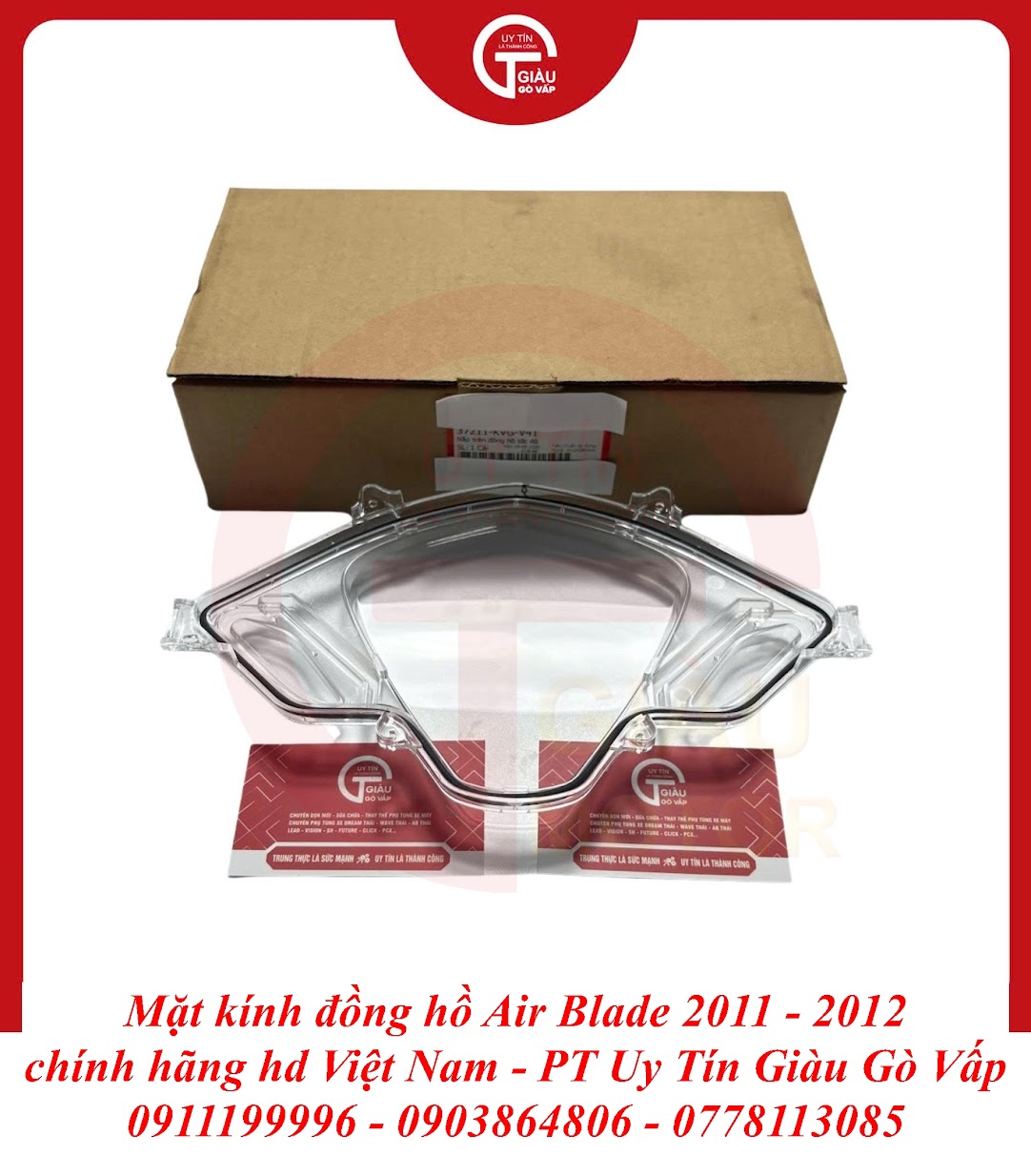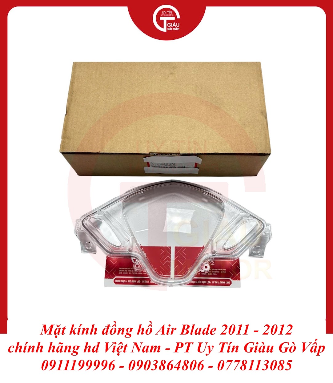 Giàu Gò Vấp là địa chỉ uy tín được cộng đồng người chơi xe Air Blade và người dùng xe máy lâu năm tại TP. Hồ Chí Minh tin tưởng. Chúng tôi cam kết mang đến cho bạn sản phẩm Mặt Kính Đồng Hồ Air Blade 2011-2012 Chính Hãng với:
