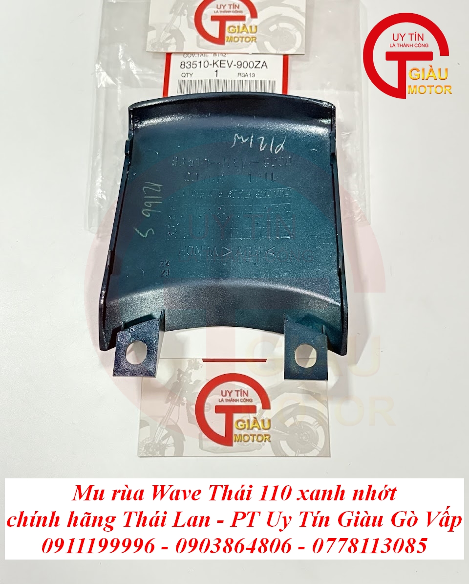 Giàu Gò Vấp là địa chỉ uy tín được cộng đồng người chơi xe Wave Thái 110 và người dùng xe máy lâu năm tại TP. Hồ Chí Minh tin tưởng. Chúng tôi cam kết mang đến cho bạn sản phẩm Mu Rùa Wave Thái 110 Màu Xanh Nhớt Chất Lượng Cao Thái Lan với: