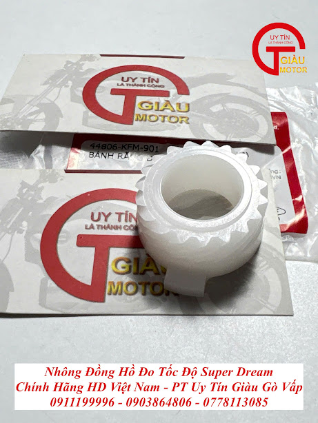 Trên dòng xe Honda Super Dream, cụm nhông đồng hồ (nhông truyền tốc độ) nằm ở bánh trước đóng vai trò truyền tín hiệu từ vòng quay bánh xe lên dây đồng hồ. Chi tiết Nhông Nhựa Trắng 19 Răng chính hãng là linh kiện nhỏ nhưng cực kỳ quan trọng, giúp bạn kiểm soát tốc độ và quãng đường di chuyển một cách chính xác nhất.