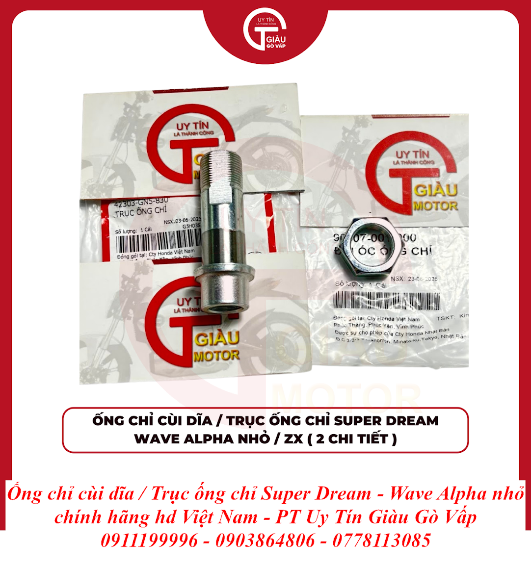 Đừng để chiếc Super Dream hay Wave Alpha Nhỏ của bạn bị lắc bánh sau hay kêu lục cục vì ống chỉ cùi dĩa đã xuống cấp. Hãy đến ngay Giàu Gò Vấp để trang bị Ống Chỉ Cùi Dĩa - Trục Ống Chỉ Super Dream - Wave Alpha Nhỏ Chính Hãng và tận hưởng cảm giác lái xe an toàn, ổn định và êm ái trên mọi cung đường!