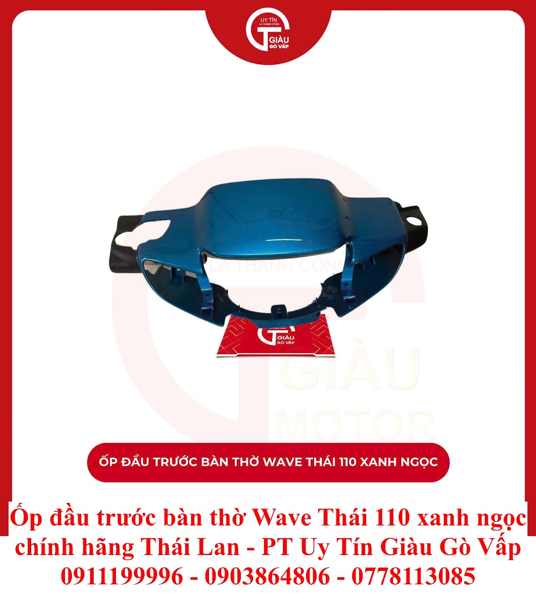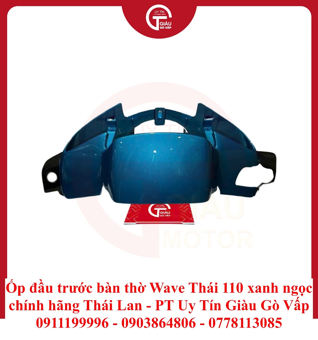Giàu Gò Vấp là địa chỉ uy tín được cộng đồng người chơi xe Wave Thái 110 và người dùng xe máy lâu năm tại TP. Hồ Chí Minh tin tưởng. Chúng tôi cam kết mang đến cho bạn sản phẩm Ốp Đầu Trước Bàn Thờ Wave Thái 110 Xanh Ngọc Chất Lượng Cao Thái Lan với: