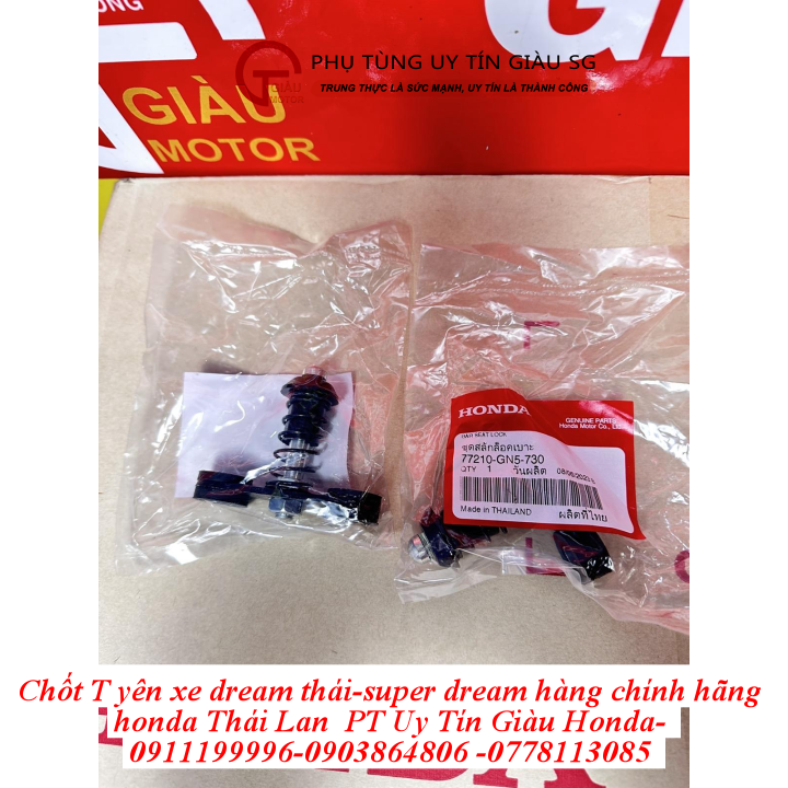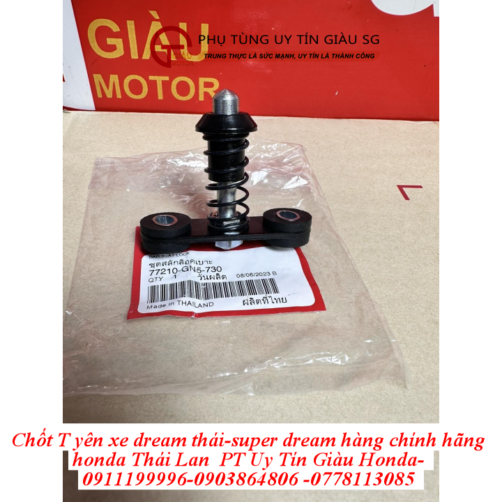 Tại cửa hàng phụ tùng Giàu Gò Vấp, chúng tôi cung cấp chốt T yên xe Dream Honda Dream-II Thái Lan chính hãng, giá rẻ. Bộ phận này được nhập khẩu trực tiếp từ Thái Lan, đảm bảo chất lượng và nguồn gốc xuất xứ.