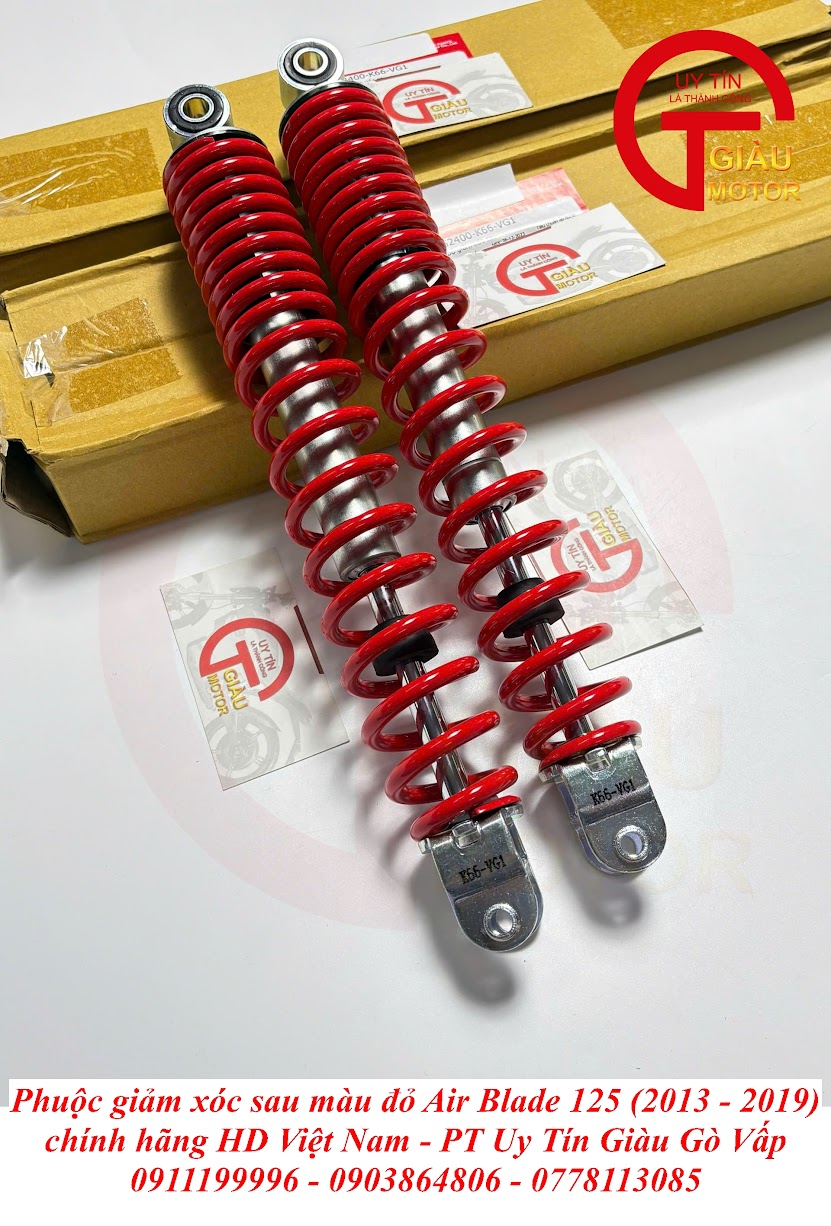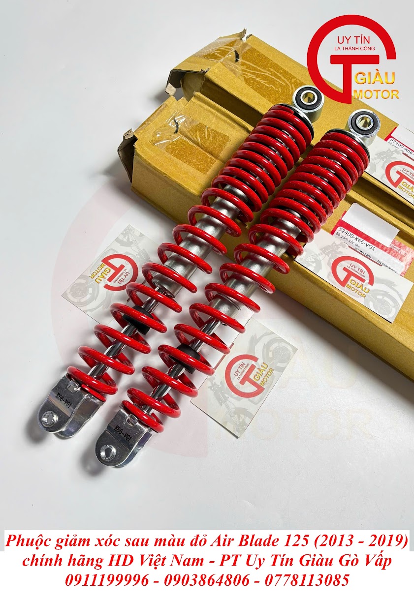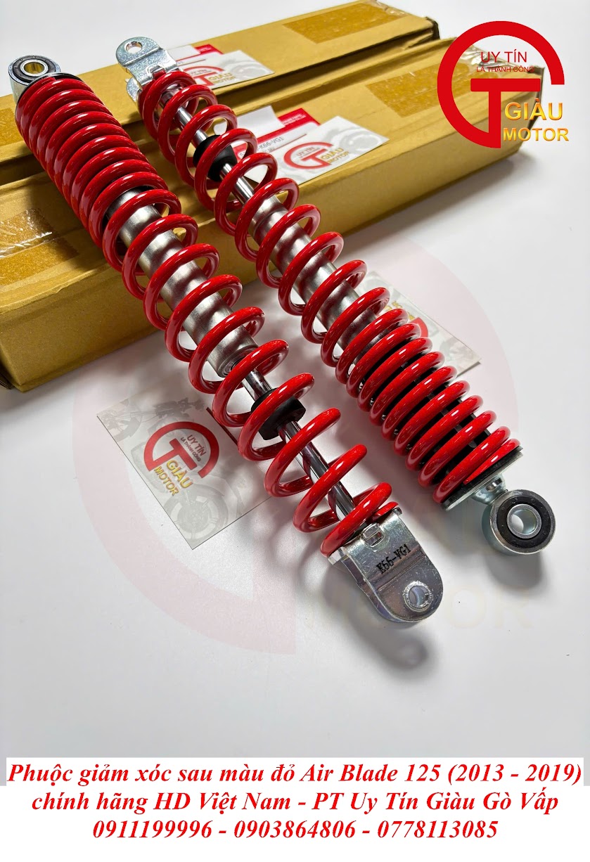 Đừng để những vấn đề này làm giảm đi sự an toàn và trải nghiệm lái xe của bạn! Hãy đến ngay Giàu Gò Vấp – cửa hàng phụ tùng xe máy uy tín hàng đầu tại TP. Hồ Chí Minh, chuyên cung cấp Phuộc Giảm Xóc Sau Air Blade 125 (2013-2019) Chính Hãng Màu Đỏ. Chúng tôi cam kết mang lại khả năng vận hành êm ái, độ bền tuyệt đối và giá tốt nhất!