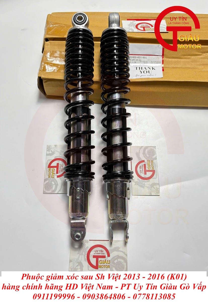 Bạn đang sở hữu một chiếc SH Việt đời 2013 đến 2016 và cảm thấy xe dạo này hơi cứng, xóc nảy khó chịu khi đi qua các đoạn đường xấu? Có lẽ đã đến lúc bạn cần thay thế phuộc giảm xóc sau rồi đấy! Đừng để phuộc cũ kỹ, kém hiệu quả làm ảnh hưởng đến trải nghiệm lái và sự an toàn của bạn. Hãy đến ngay Giàu Gò Vấp để sở hữu Phuộc Giảm Xóc Sau SH Việt 2013 - 2016 (K01) Chính Hãng, đảm bảo chất lượng, êm ái và an toàn tối đa!