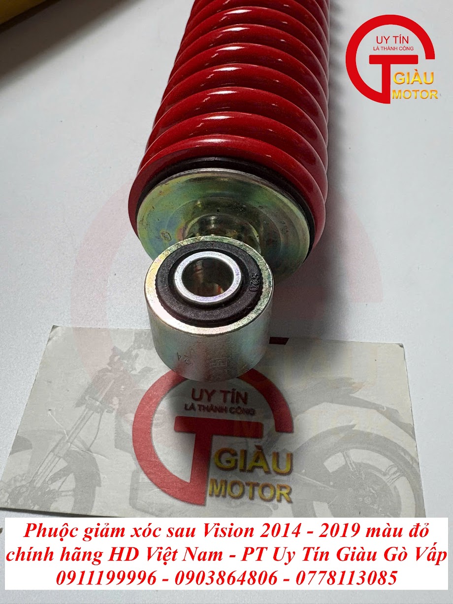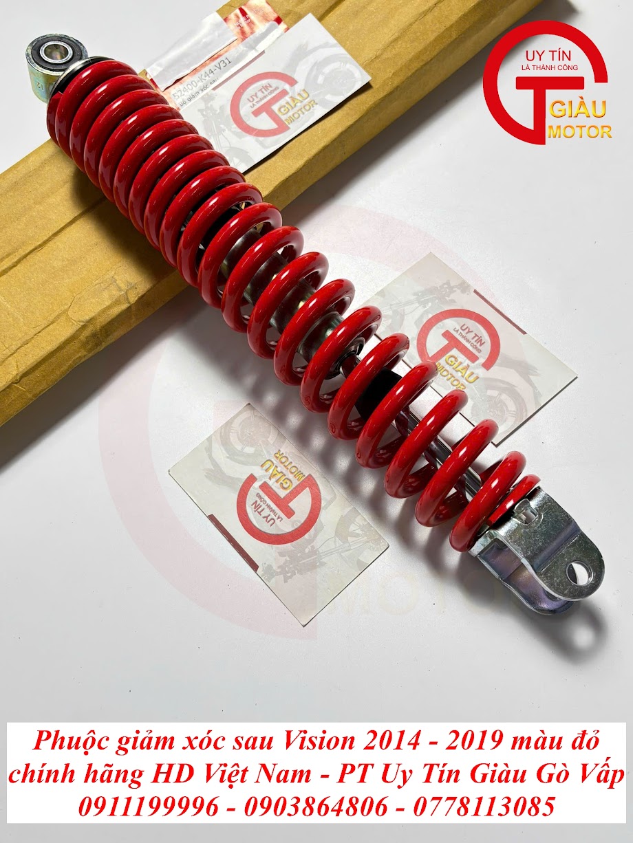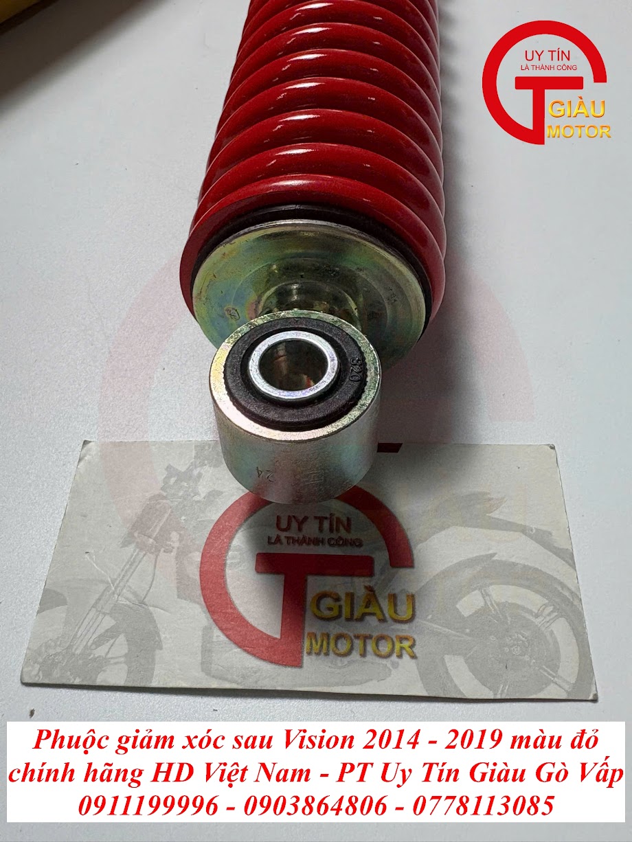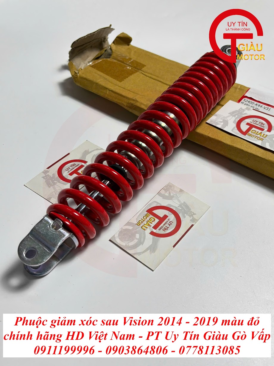 Đừng để những vấn đề này làm giảm đi sự an toàn và trải nghiệm lái xe của bạn! Hãy đến ngay Giàu Gò Vấp – cửa hàng phụ tùng xe máy uy tín hàng đầu tại TP. Hồ Chí Minh, chuyên cung cấp Phuộc Giảm Xóc Sau Vision 2014-2019 Màu Đỏ Chính Hãng. Chúng tôi cam kết mang lại khả năng vận hành êm ái, độ bền tuyệt đối và giá tốt nhất!