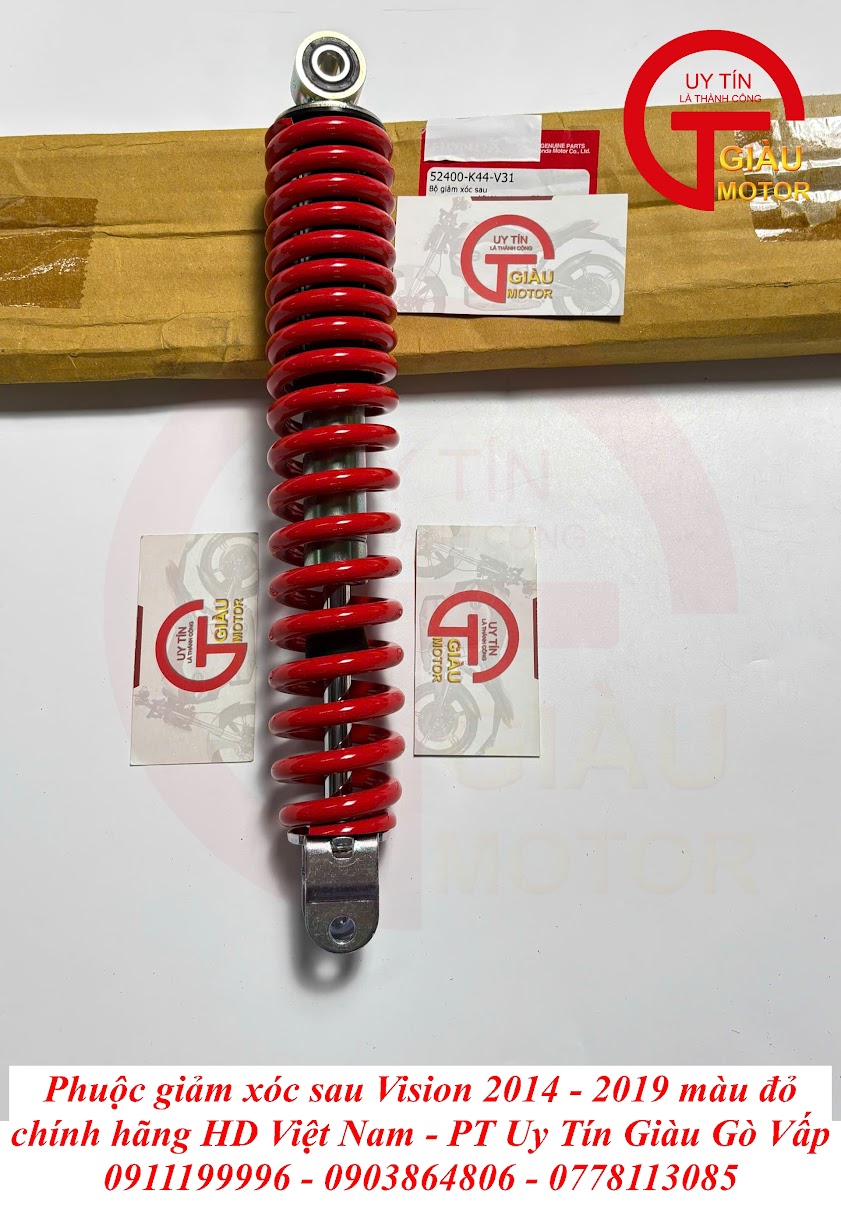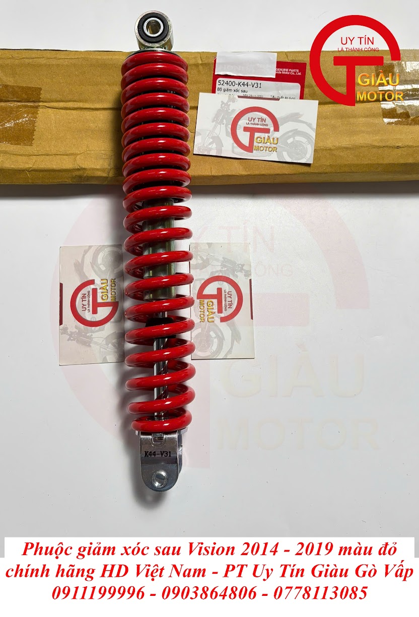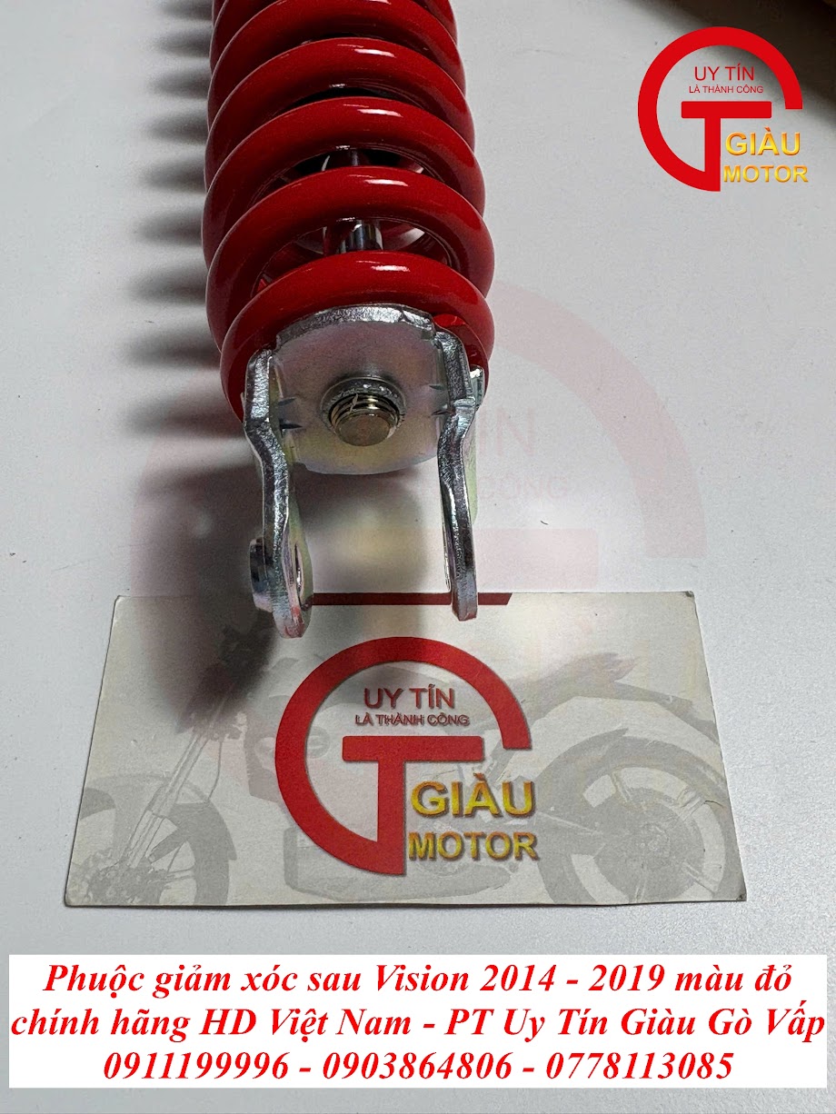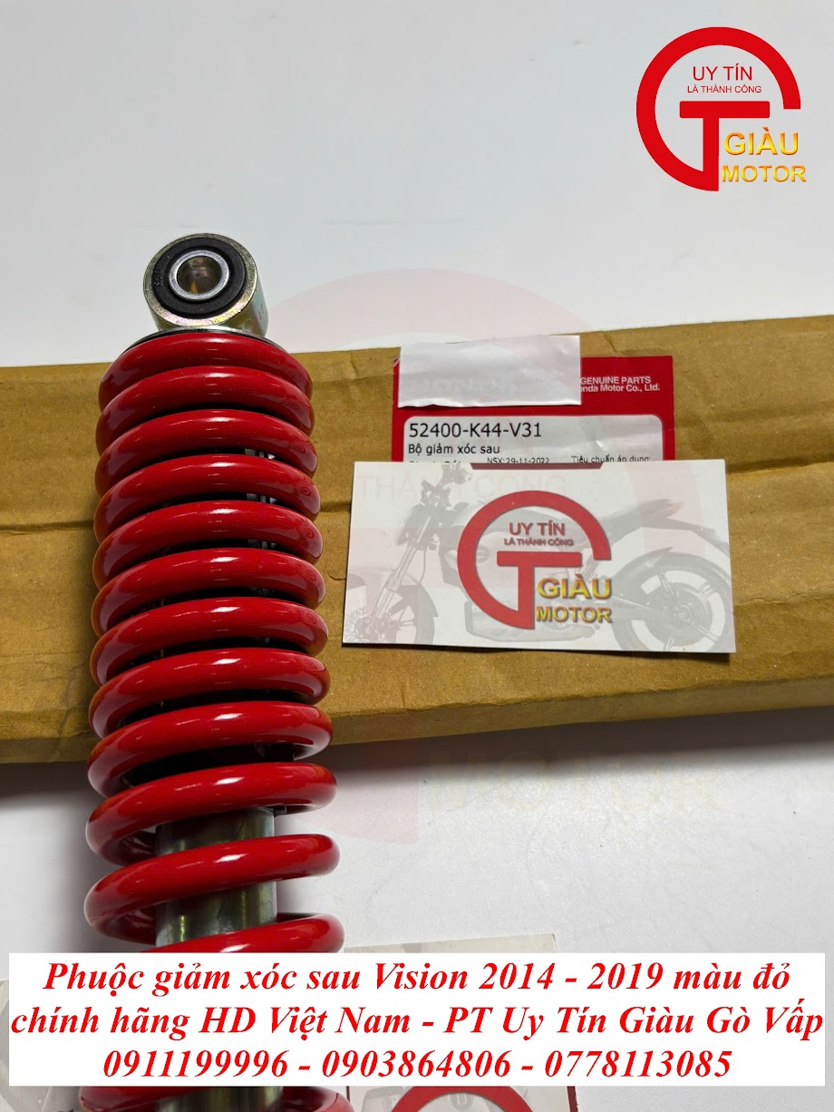 Đừng để những vấn đề này làm giảm đi sự an toàn và trải nghiệm lái xe của bạn! Hãy đến ngay Giàu Gò Vấp – cửa hàng phụ tùng xe máy uy tín hàng đầu tại TP. Hồ Chí Minh, chuyên cung cấp Phuộc Giảm Xóc Sau Vision 2014-2019 Màu Đỏ Chính Hãng. Chúng tôi cam kết mang lại khả năng vận hành êm ái, độ bền tuyệt đối và giá tốt nhất!